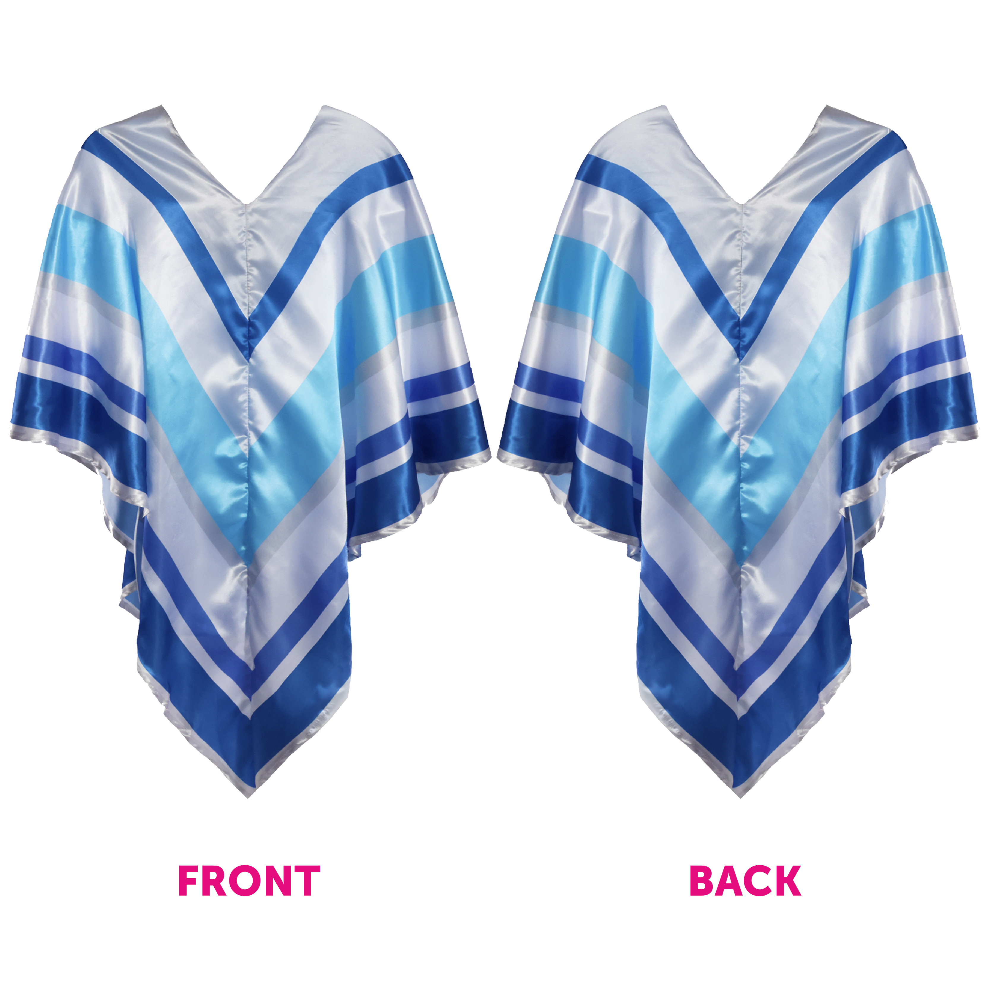 SET INCLUDES: Your Adults 70's Pop Set includes a quality Satin Poncho, with Dark Blue, White, Grey and Light Blue Stripes, and a Plastic Microphone covered in Silver Glitter, the perfect fancy dress Costume for any event!