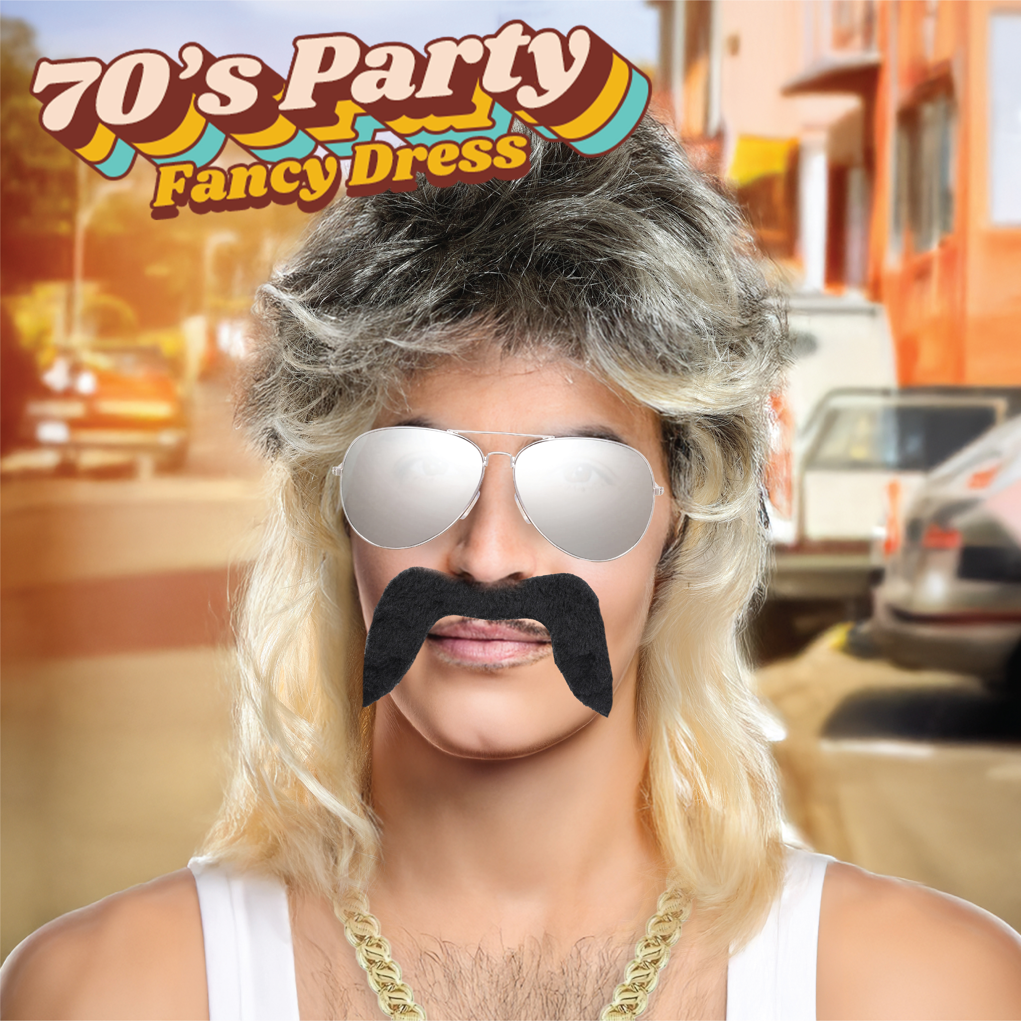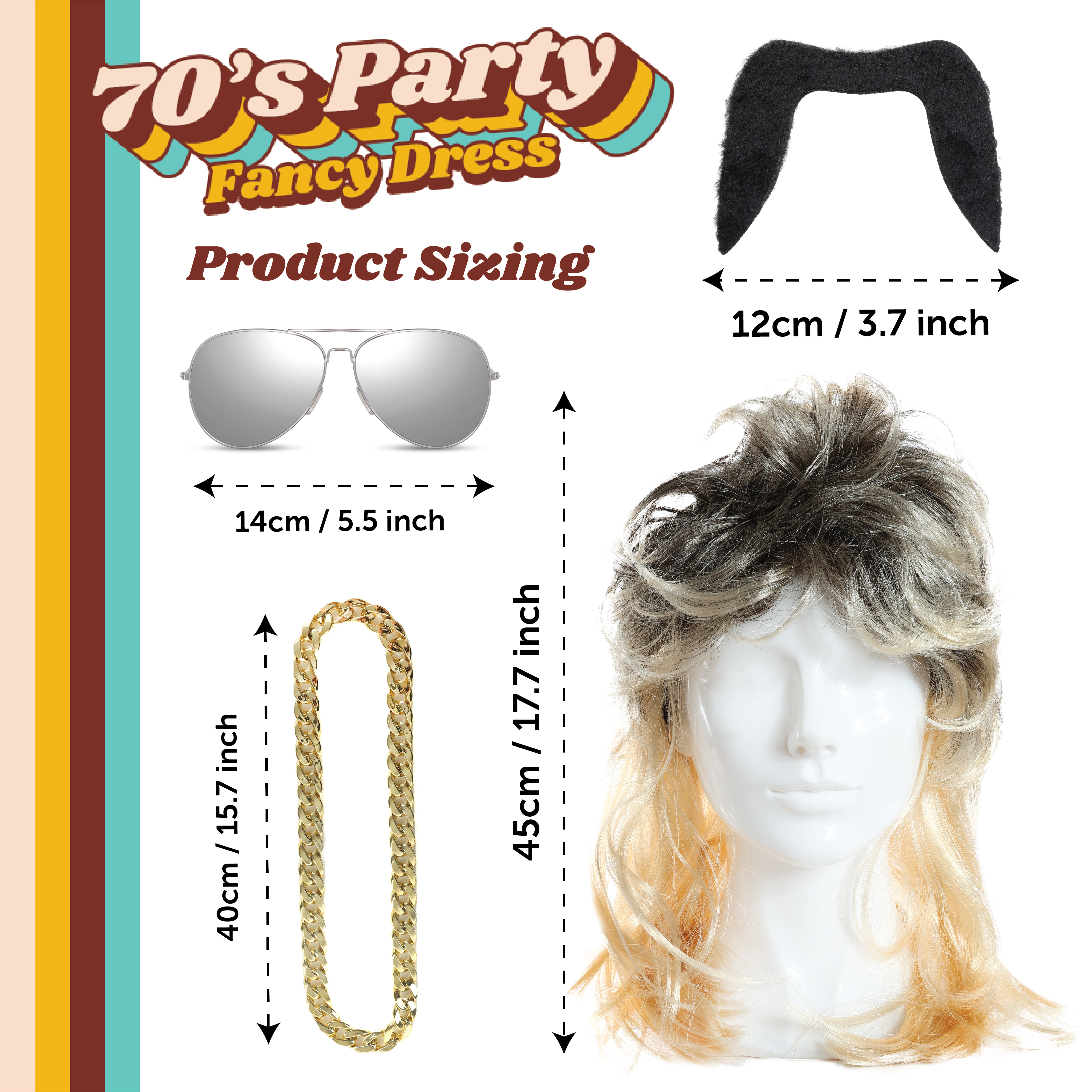 Ultimate Retro Transformation: Step into the '70s, '80s, or '90s with this 3-piece Mullet Set – the ultimate way to bring back that classic throwback style! Whether you're rocking a retro party, dressing up for Halloween, or just want to make an unforgettable entrance, this set has everything you need.