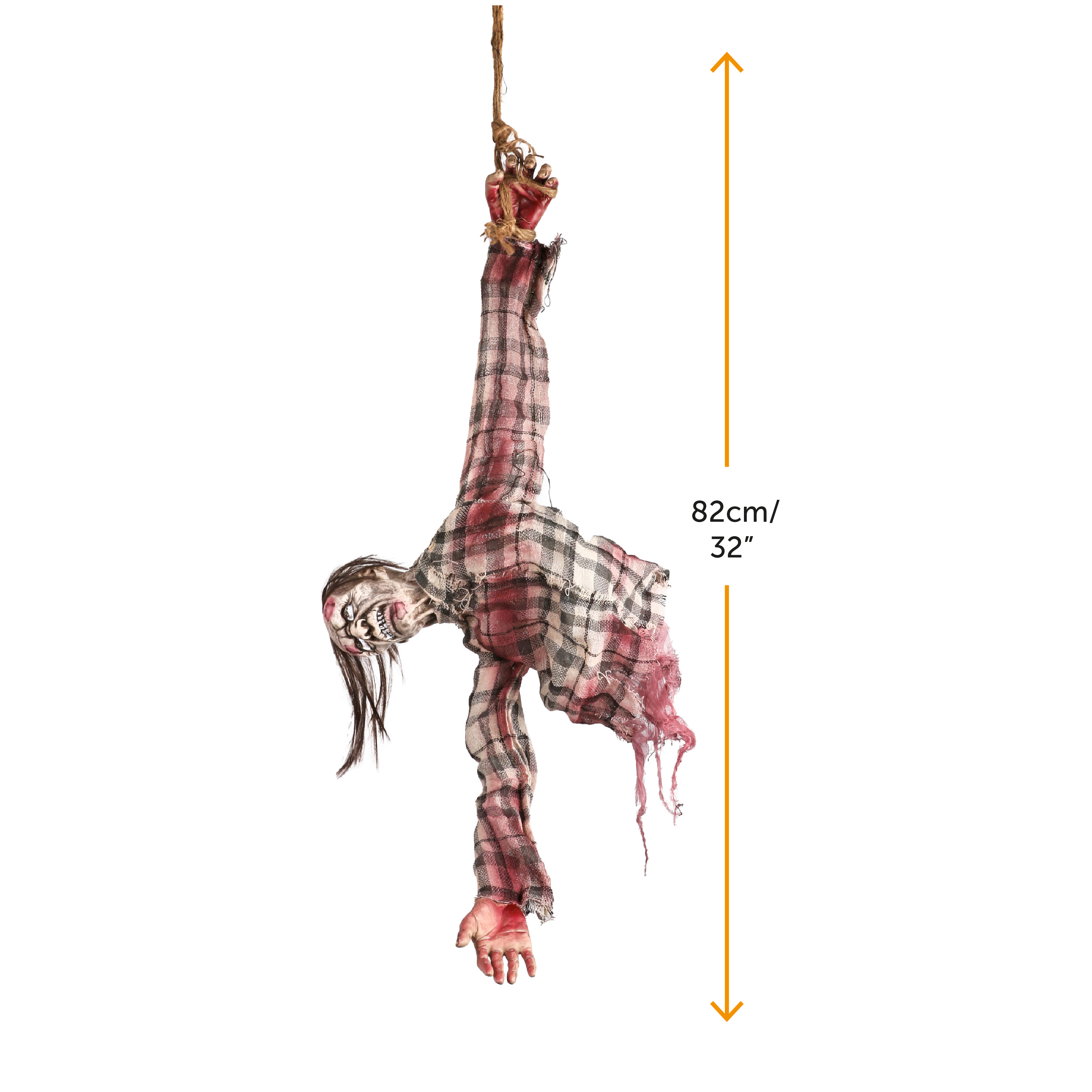 ANIMATRONIC ZOMBIE MEASUREMENTS: Your Undead Hanging Zombie Animatronic is 82cm/32” tall from the head down, a large and very noticeable undead Zombie decoration that will be sure to stand out proudly for your home and event decoration!