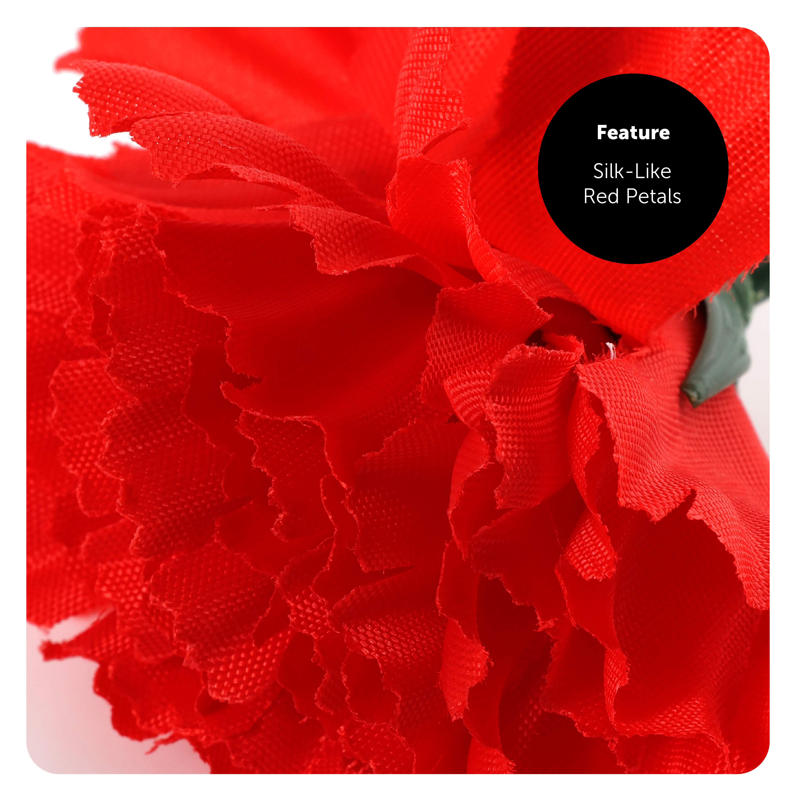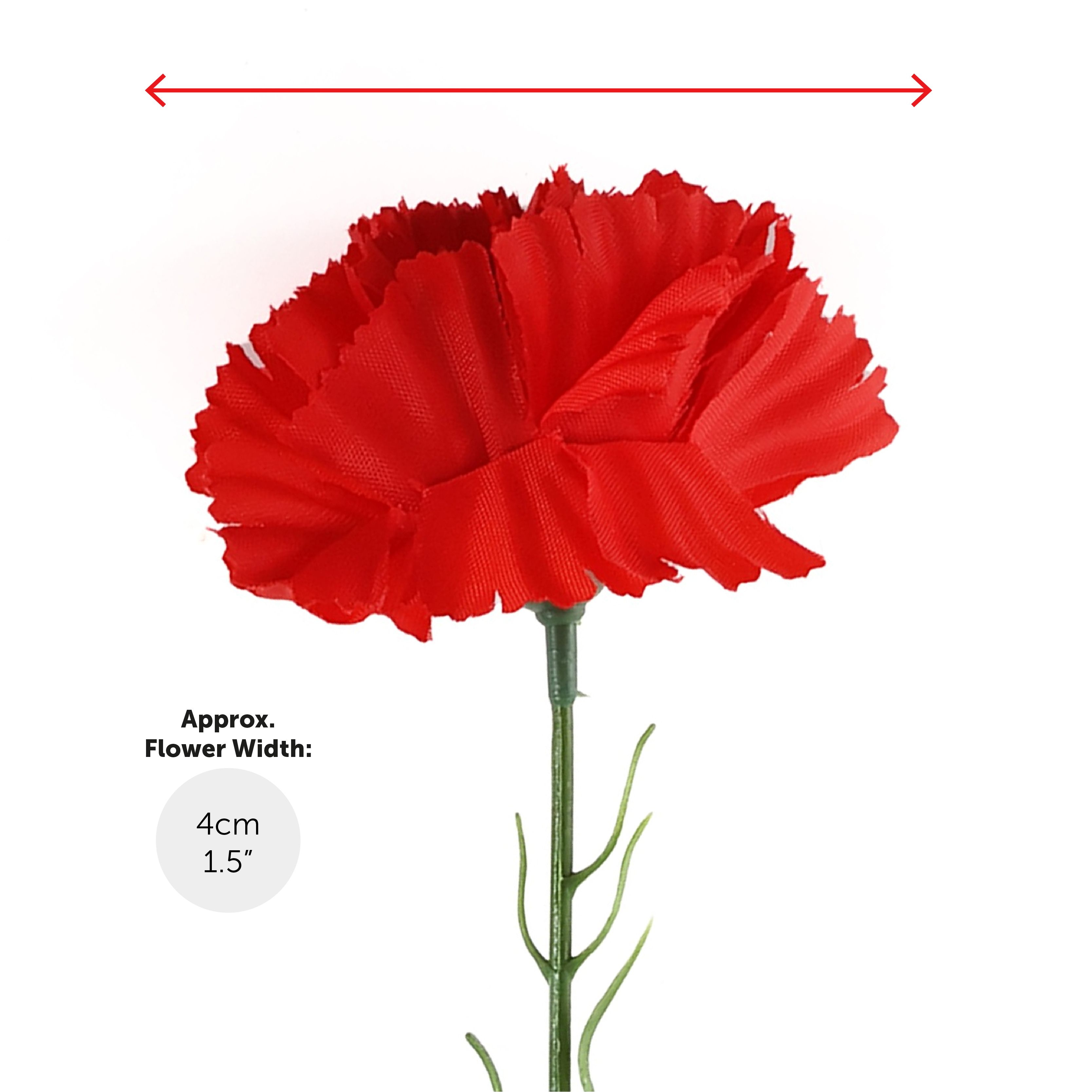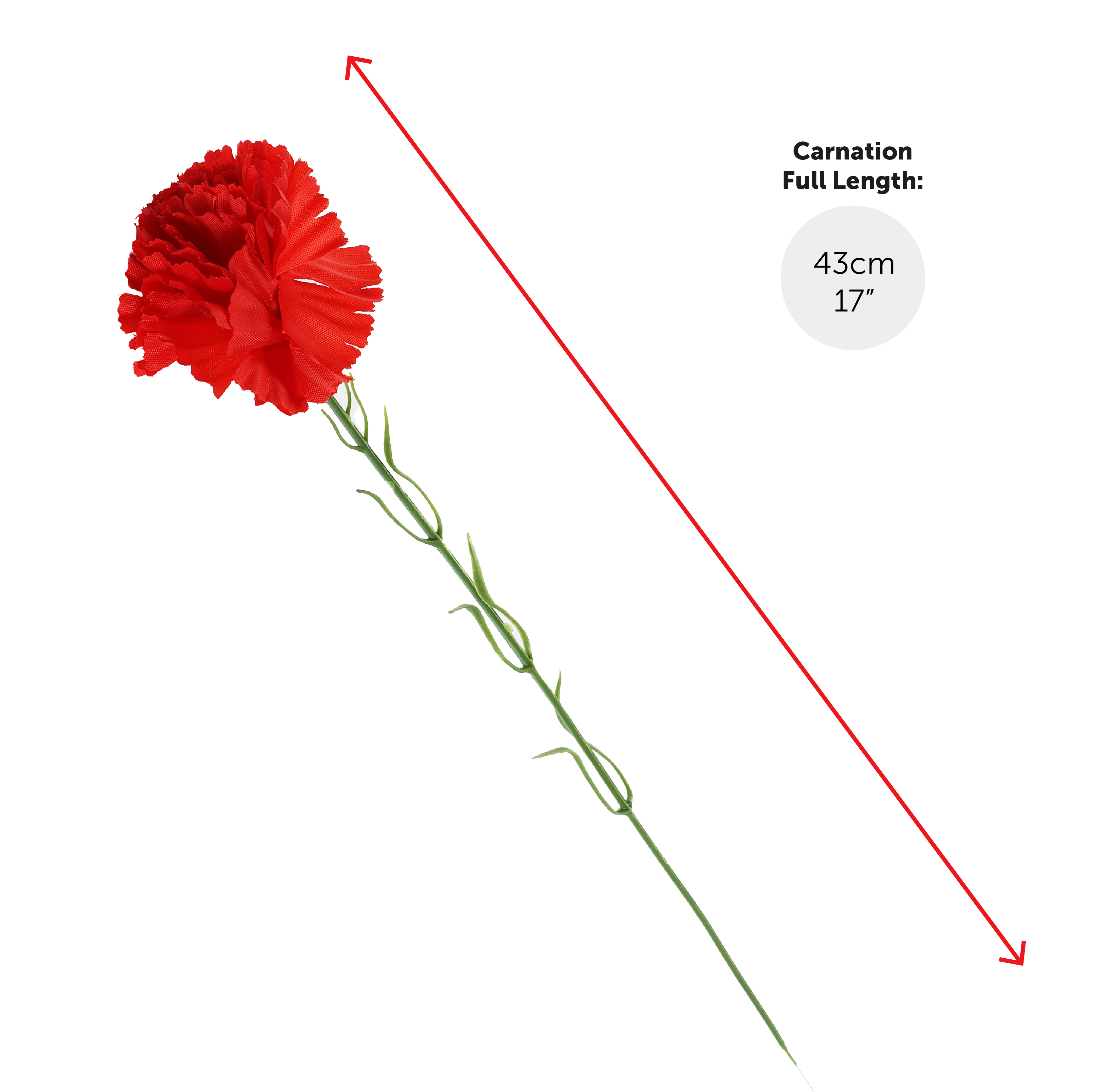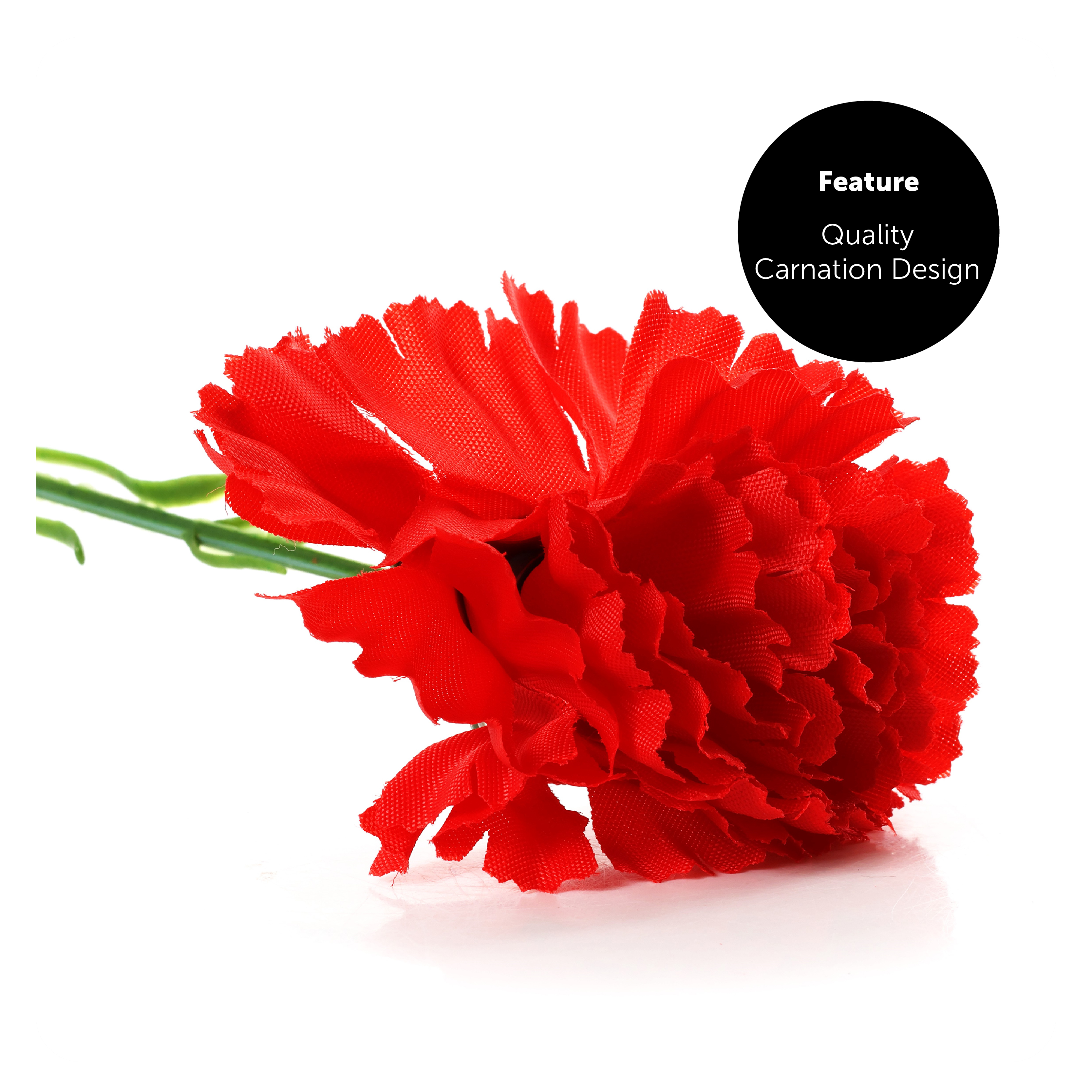 CARNATION DETAILS: This Red Carnation is a quality, artificial accessory with a vibrant Red, silk-like Carnation Flower at the end of a long Green Stem, the perfect addition to any event!