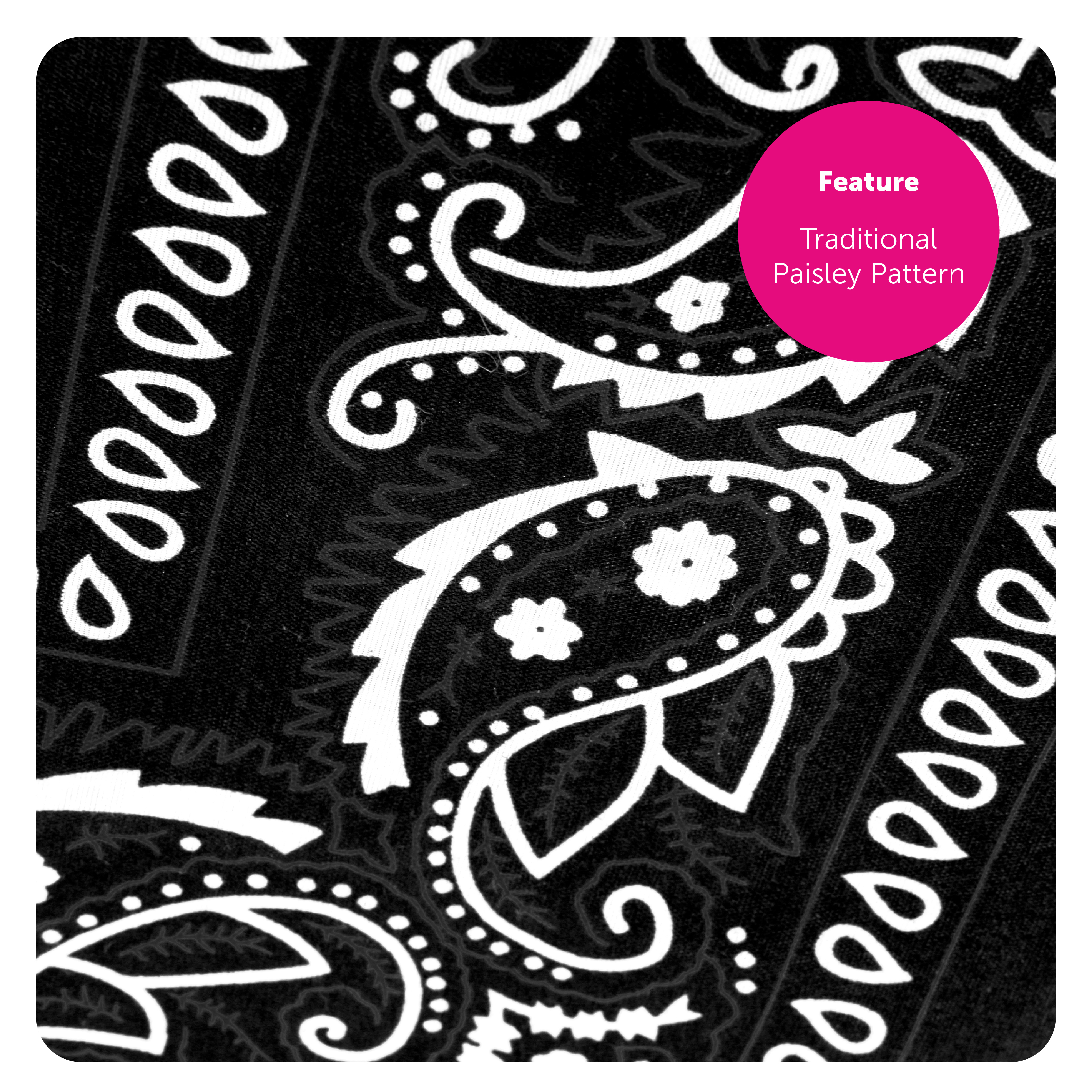 GREAT SIZE: When unfolded, the Black Paisley Bandana measures 55cm x 55cm (21.5" x 21.5"), a great size that can be folded down to fit your outfit perfectly!