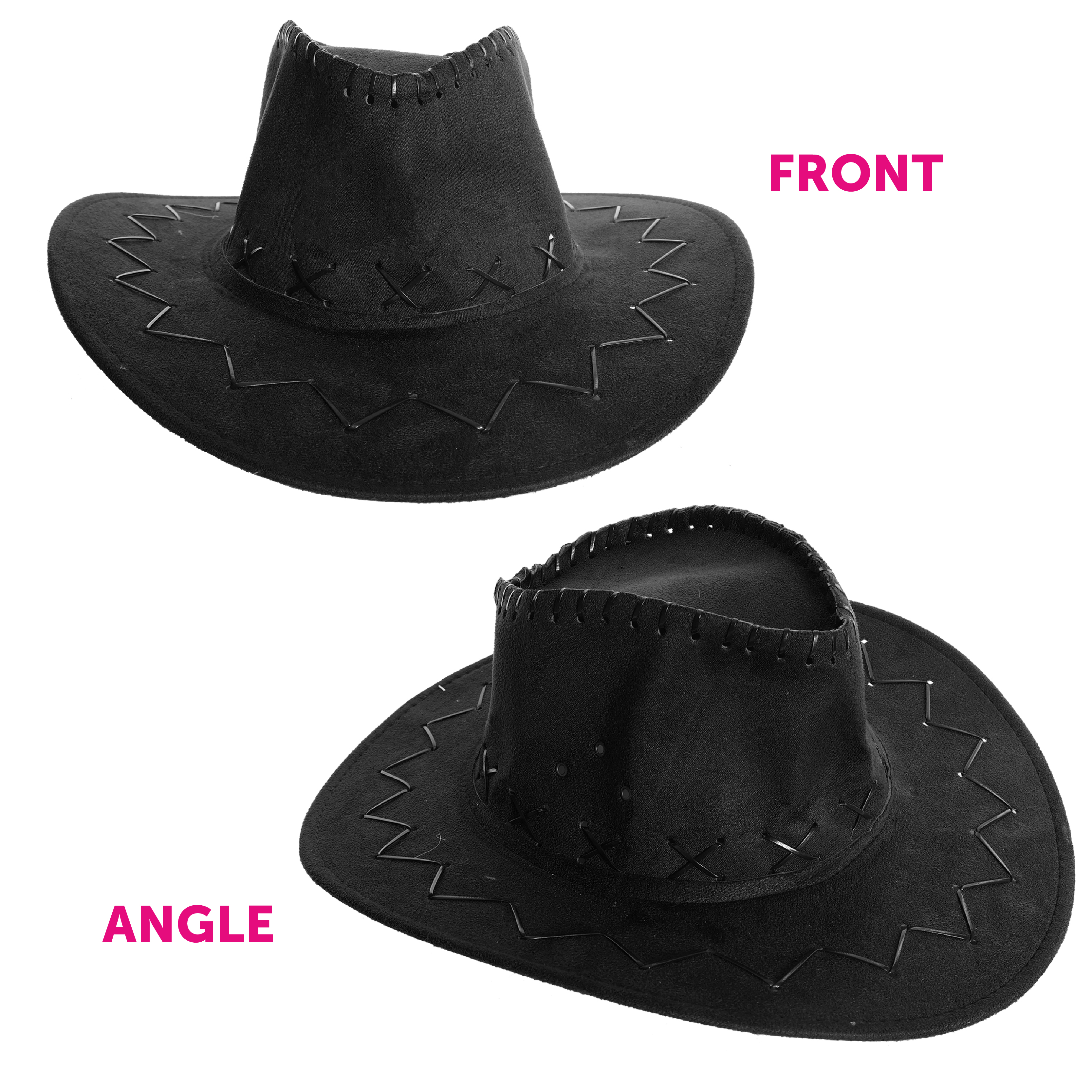 AVAILABLE IN MULTIPLE PACKS: Your Black Faux Suede Cowboy Hat is available in multiple pack sizes for you to share at any fancy dress event! The pack sizes range from Packs of 1 to Packs of 2, Packs of 3, Packs of 6, Packs of 12, Packs of 24 and Packs of 48!