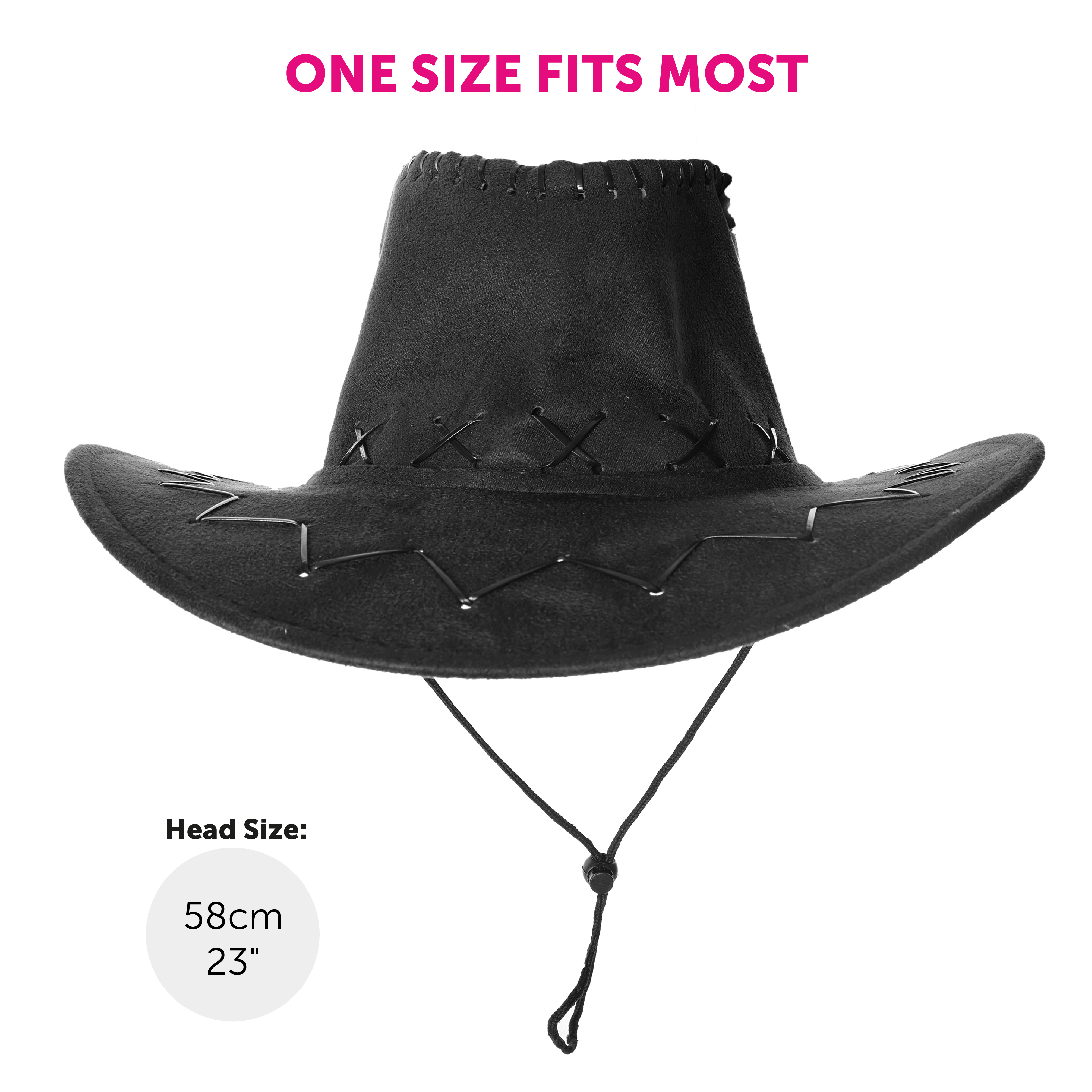 ONE SIZE FITS MOST: This Black Faux Suede Cowboy Hat is designed to fit most Adults comfortably with a suitable head size of 58cm (23")