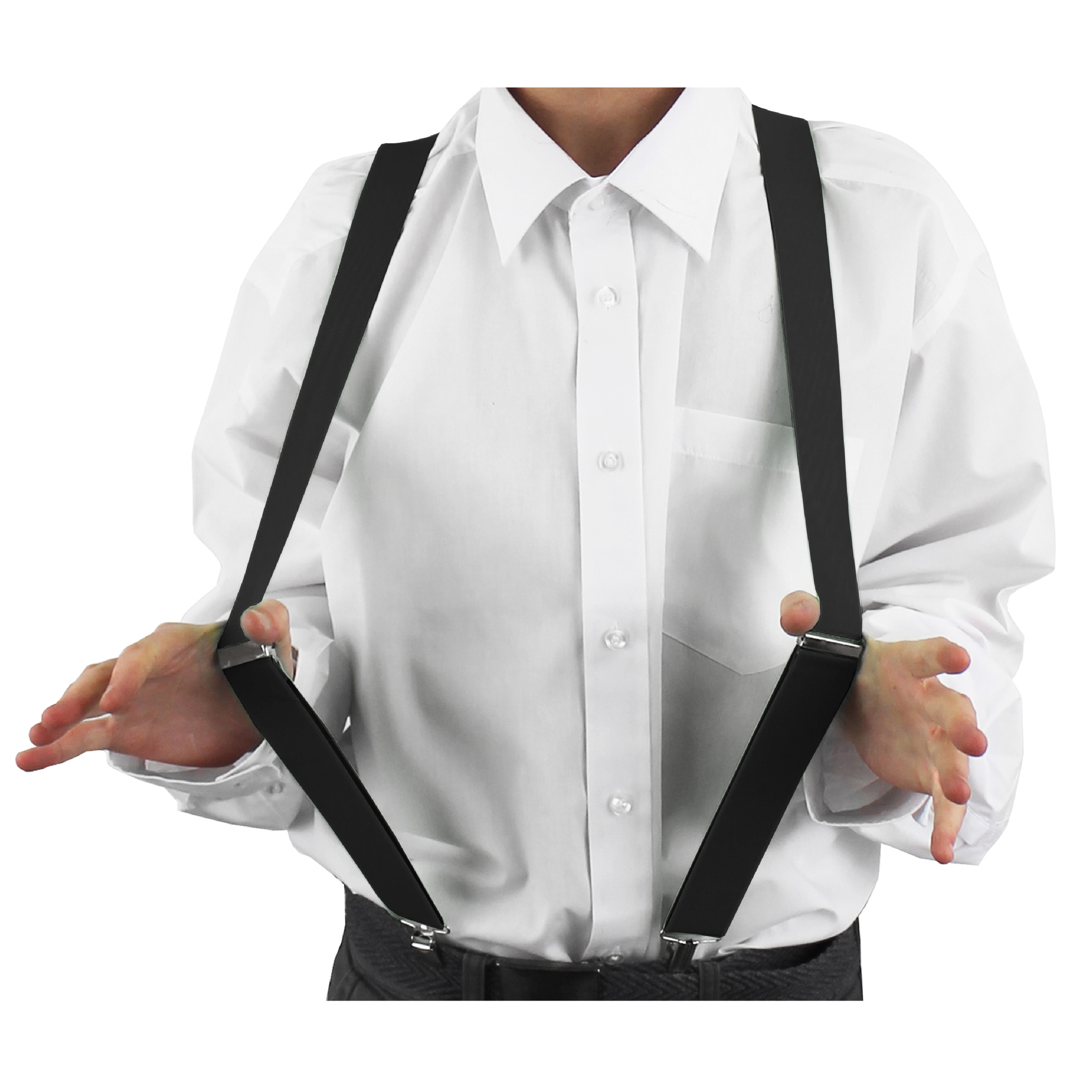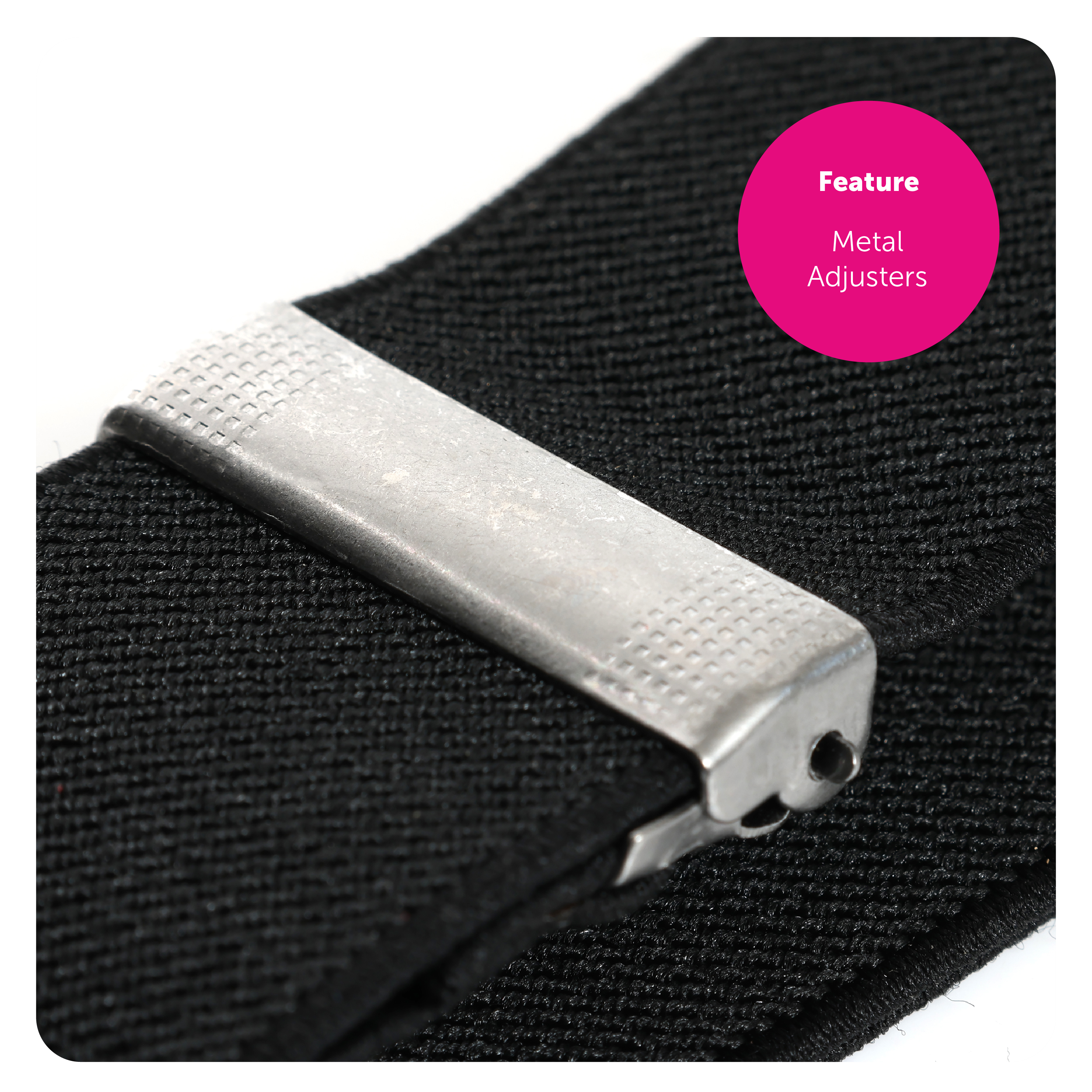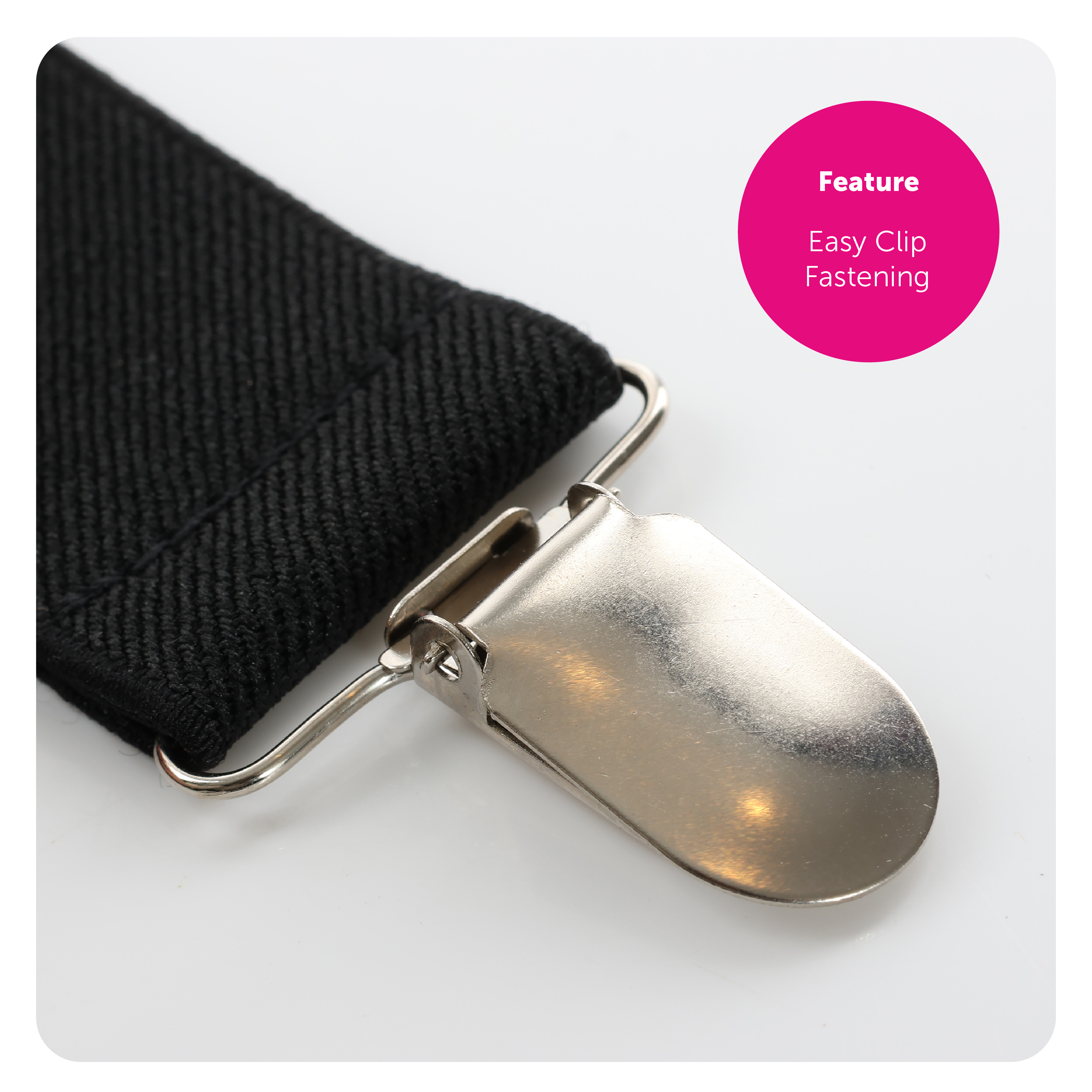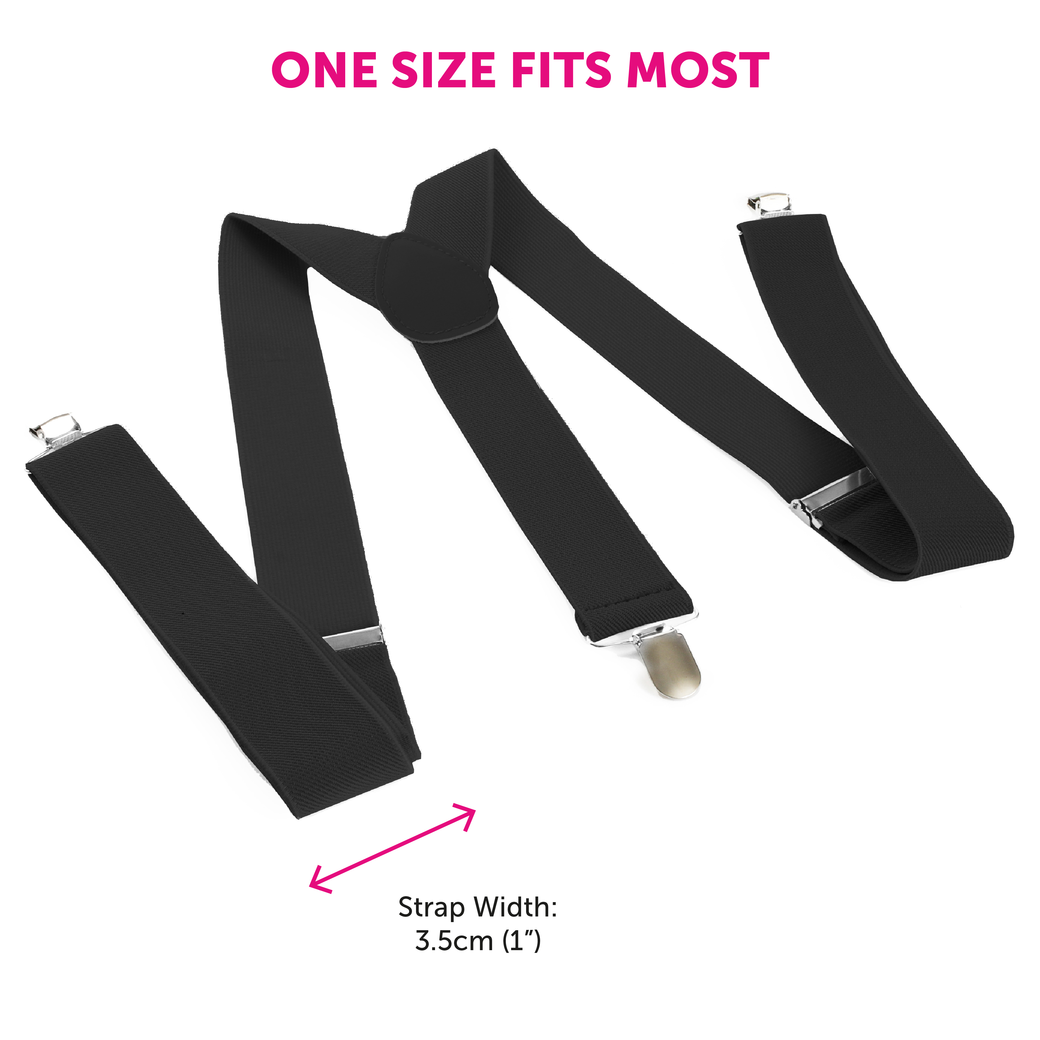 AVAILABLE IN ONE SIZE: As the Black Suspenders are elasticated with metal adjusters, they are designed in one size - allowing most to wear them comfortably!