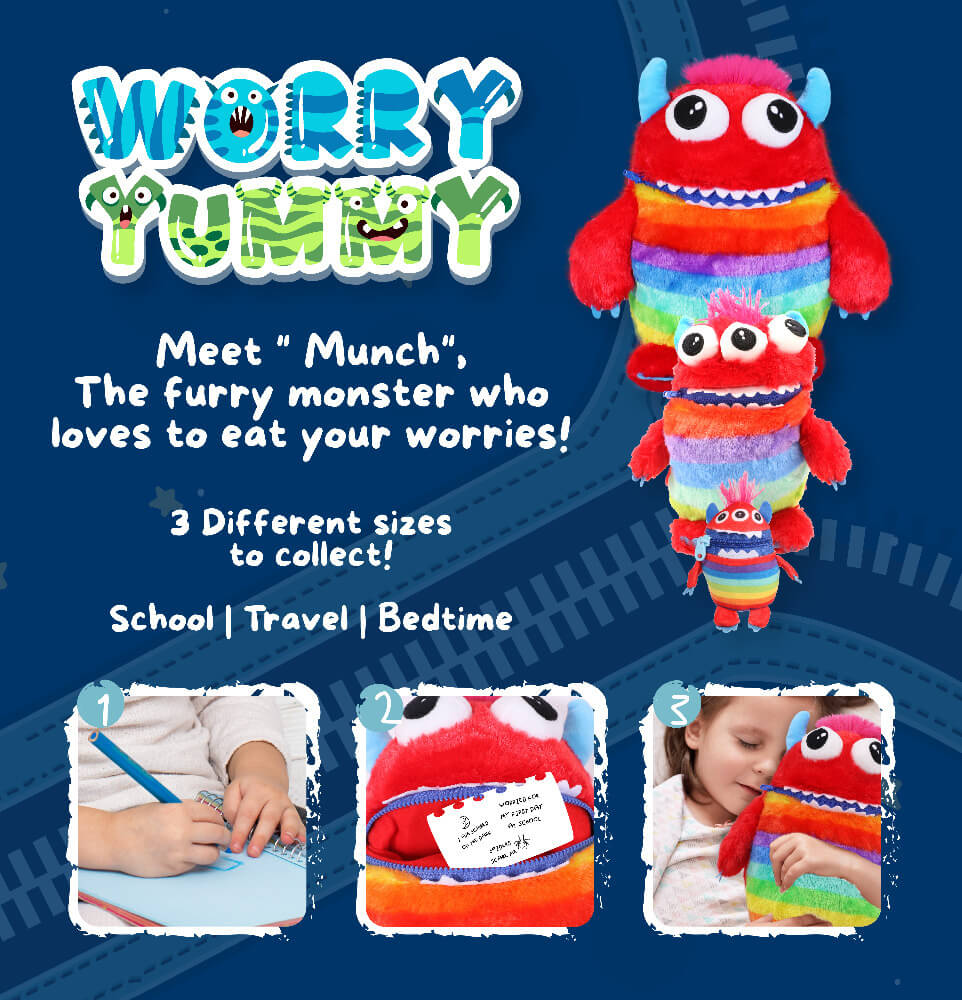 These soft cuddly toys are recommended by Child Psychologists to help children ease their worries! All they have to do is write down a worry or fear and feed it to the monster using their zipper mouths. They eat all your worries and fears!
