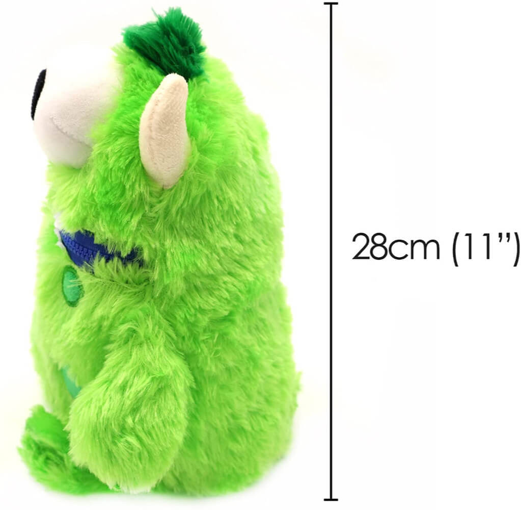 Meet Hank, Our Green Worry Yummy, He is a big Green Cuddly Monster with Horns and 1 Cyclops Eye, Unzip his mouth to get him to Eat your Worries!