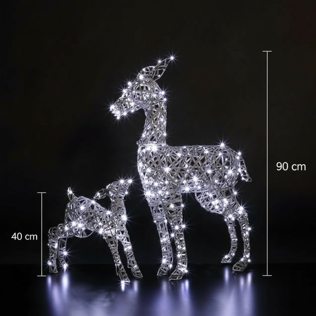 - Pack of 2: 1 large deer (90cm) + 1 small fawn (40cm).