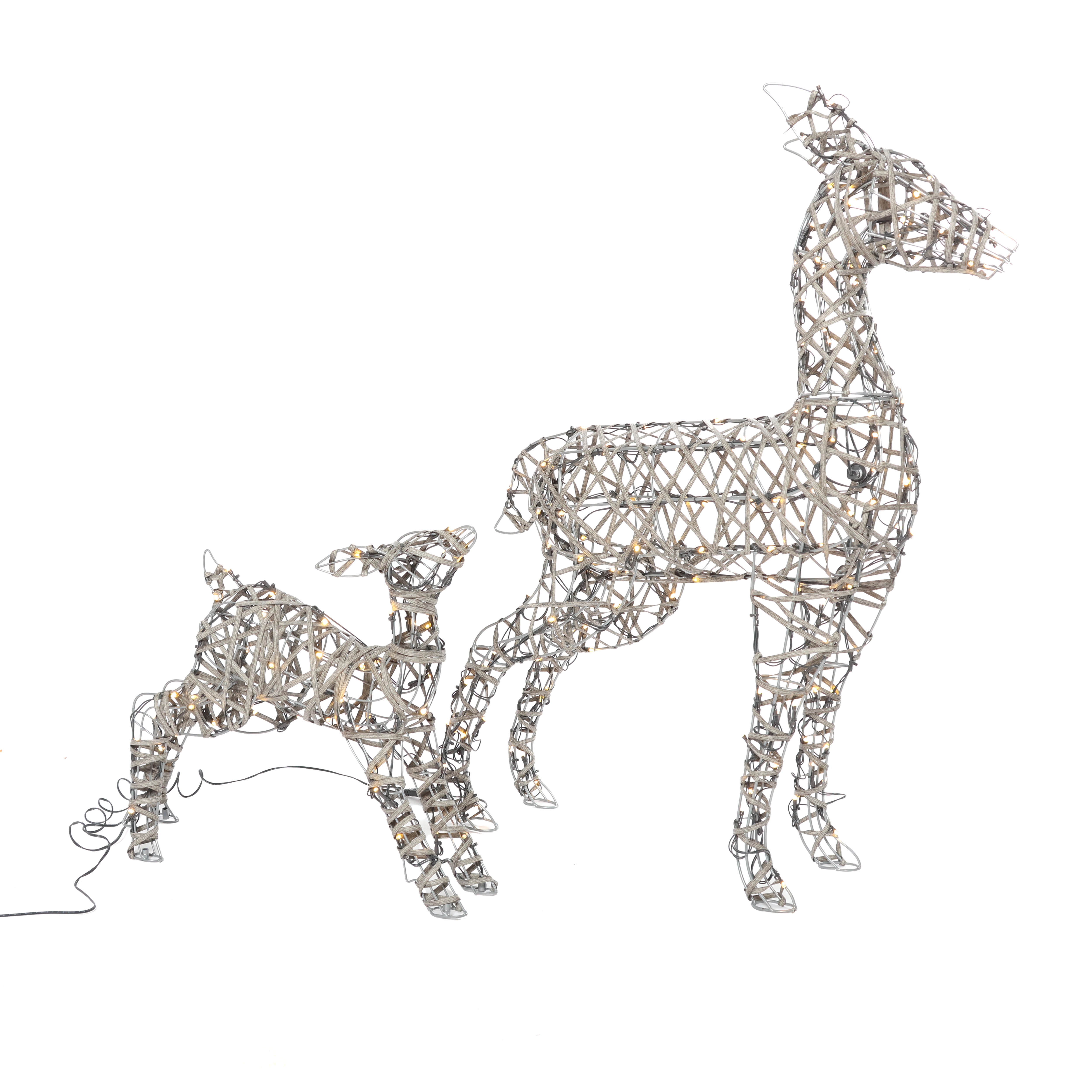 Noma Grey Rattan Richmond Deer & Fawn Decoration | 230 Warm/Cool White LEDs