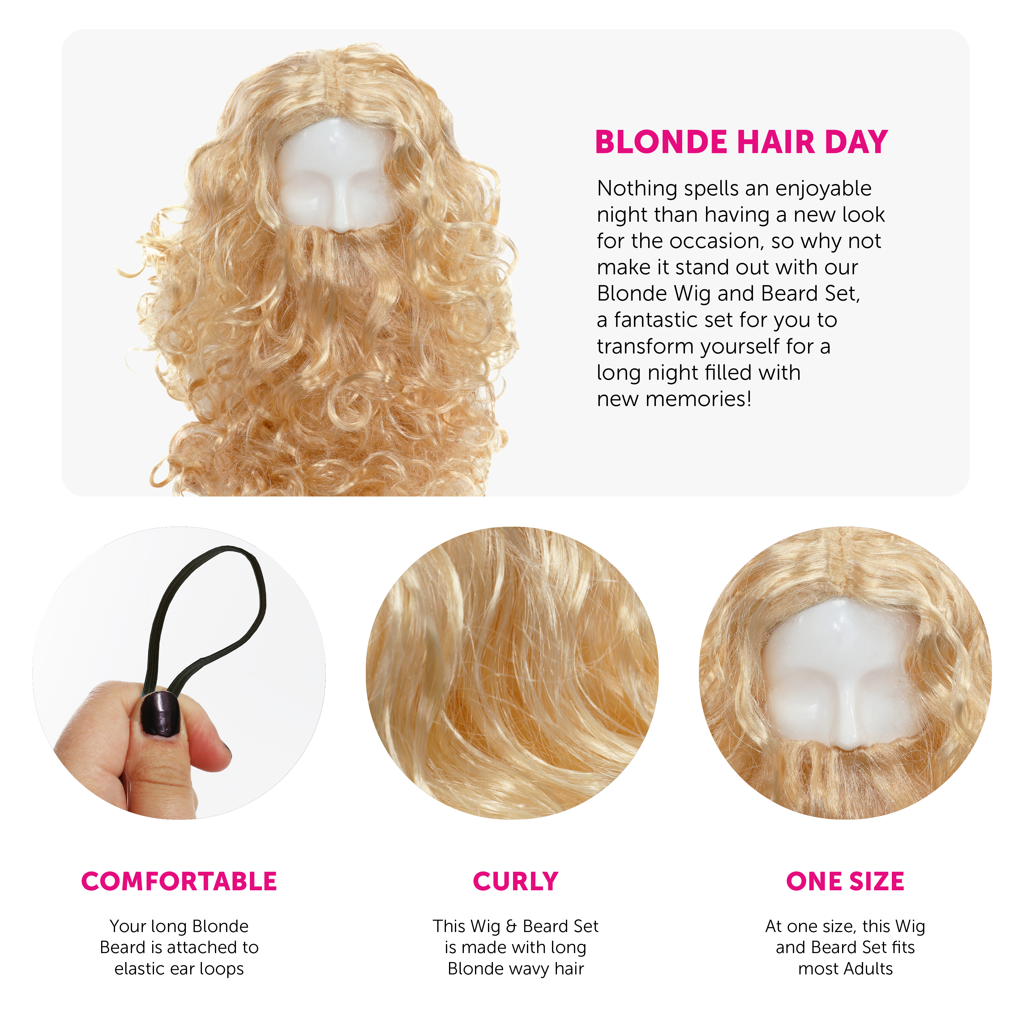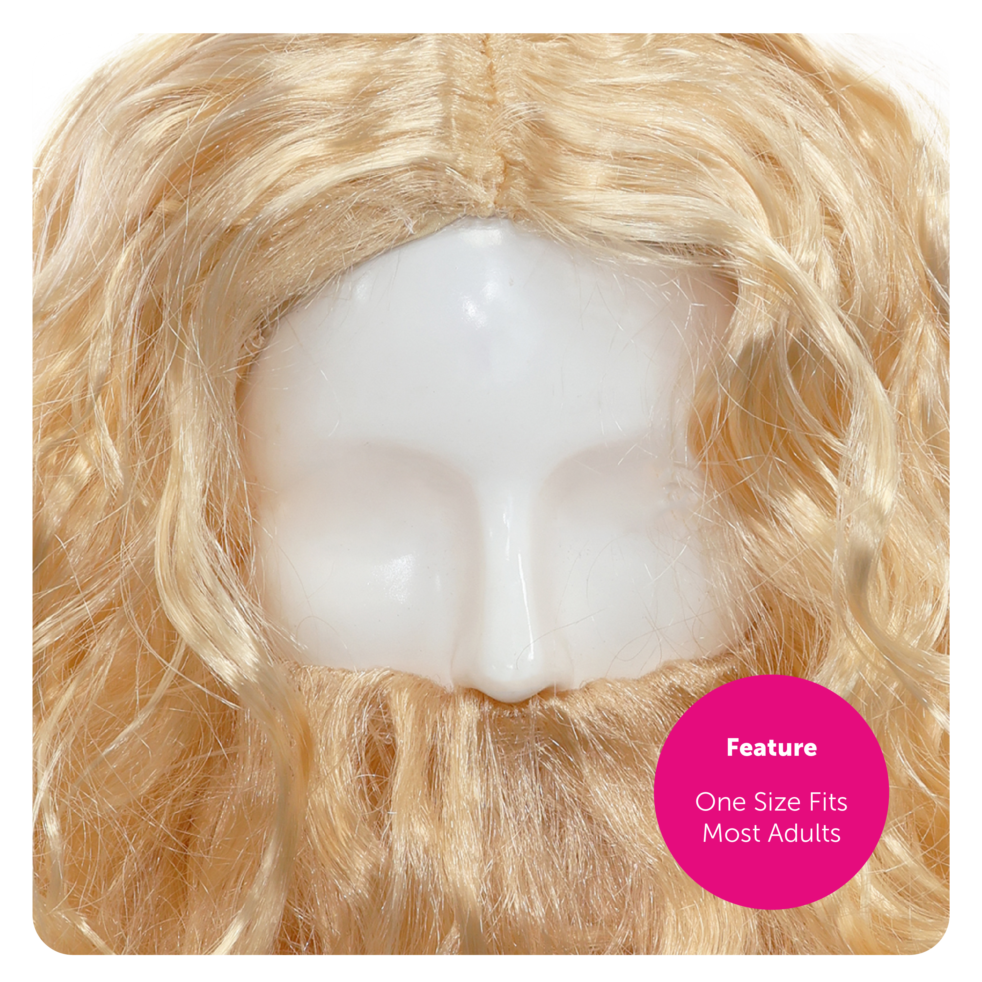 SET DETAILS: This Set includes a Long Blonde Curly Wig and a matching Blonde Beard with elasticated ear loops for you to wear comfortably!