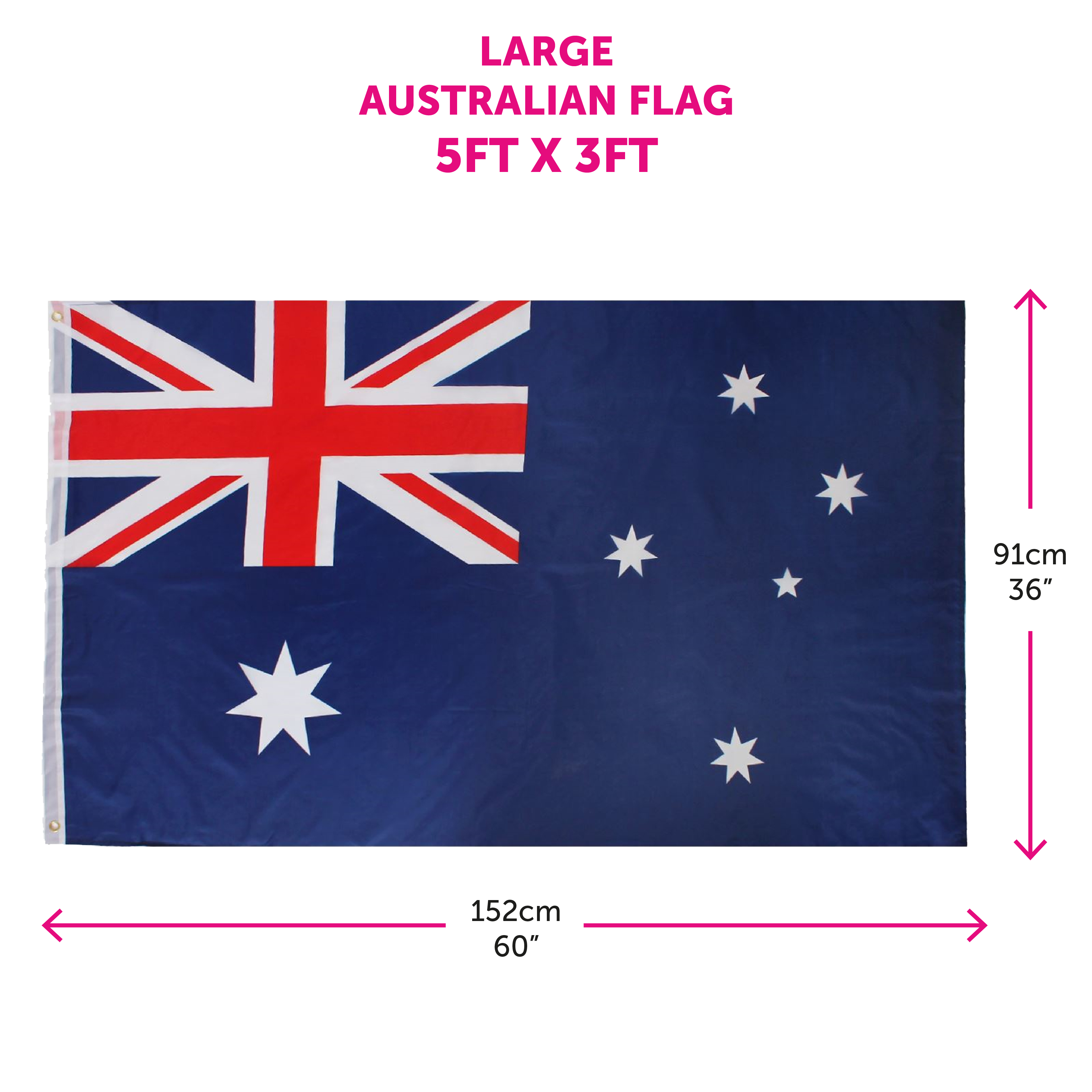 HANG UP ANYWHERE: With the Eyelet holes on the flag, you’re free to hang your 5ft x 3ft Australian Flag anywhere! The reusable Australian Bunting is attached to a durable strip, which is perfect for outdoor use due to its all-weather, water resistant and easy to clean qualities!