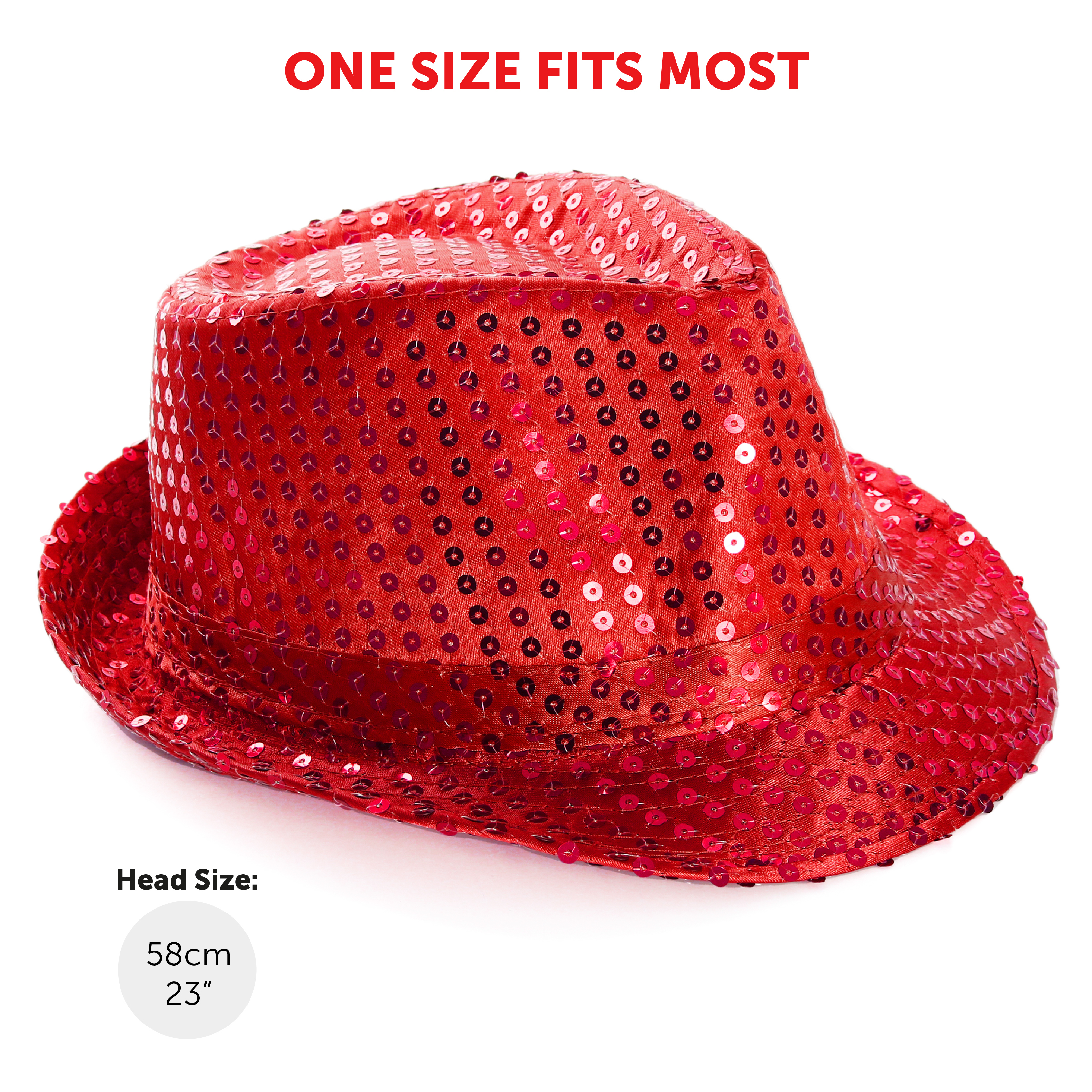 ONE SIZE FITS MOST: Your Red Sequin Trilby Hat is designed as a comfortable one size fits most, with the head size measuring 58cm (23"), incredibly comfortable for most!