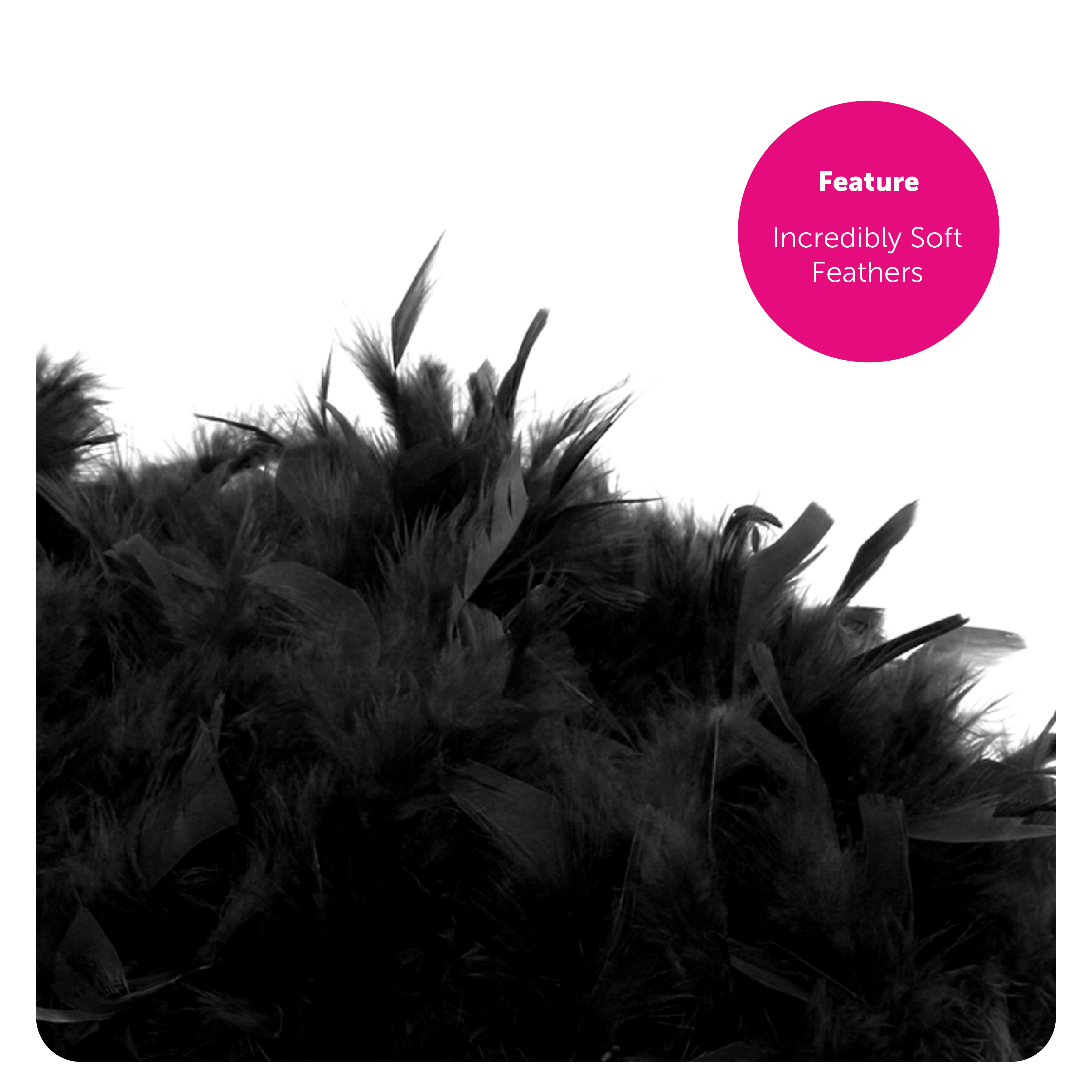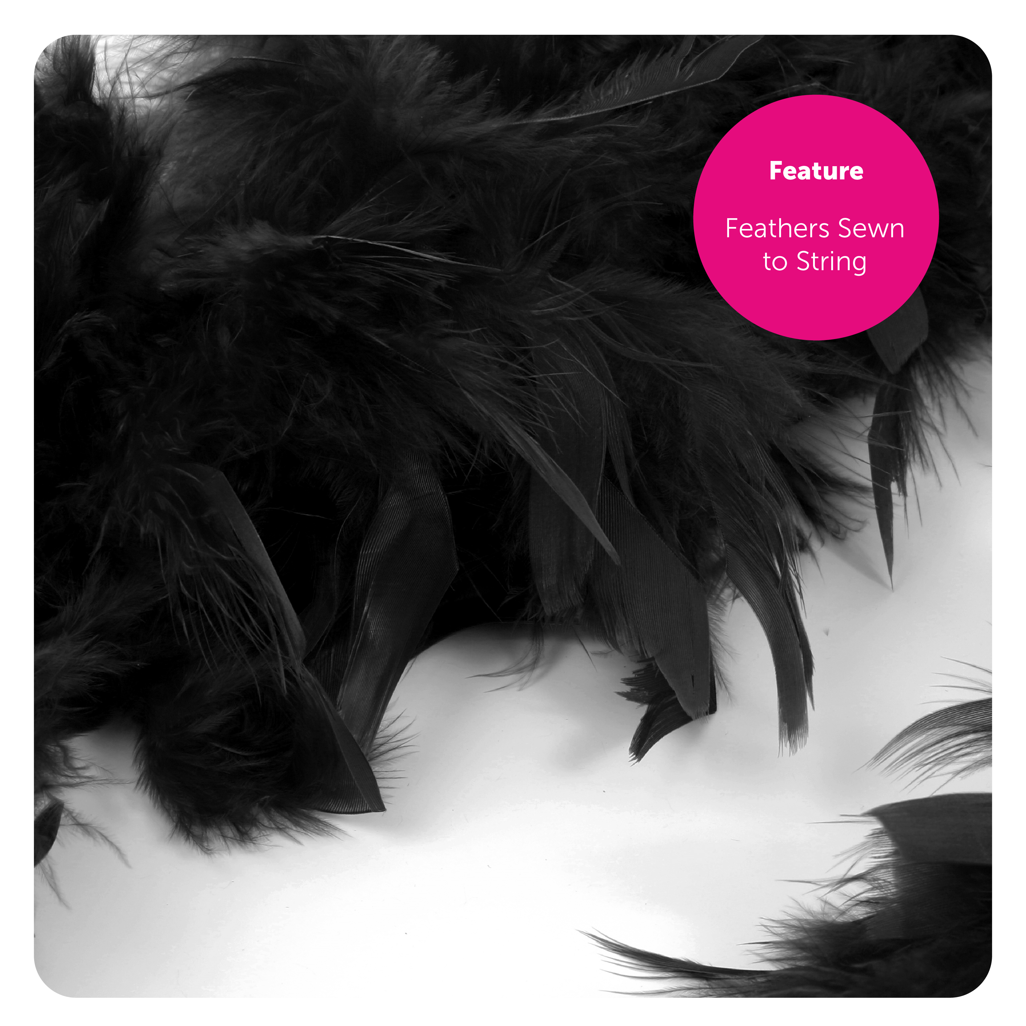 INCREDIBLY SOFT FEATHERS: Your Black Feather Boa is made with incredibly soft feathers sewn onto string - although the product is reusable, there may be some initial shedding, please shake the Feather Boa to rid of any loose feathers before wearing!