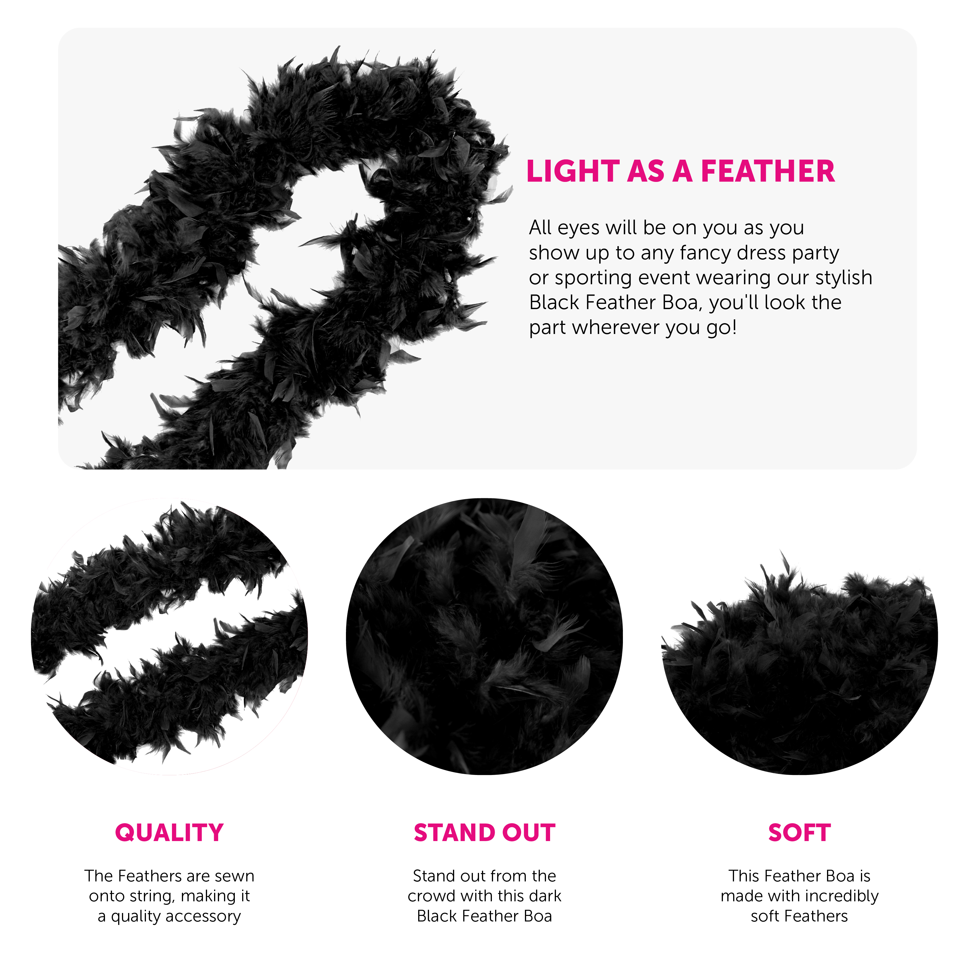 BLACK FEATHER BOA: All eyes will be on you as you show up to any fancy dress party or sporting event wearing our stylish Black Feather Boa, you'll look the part wherever you go!