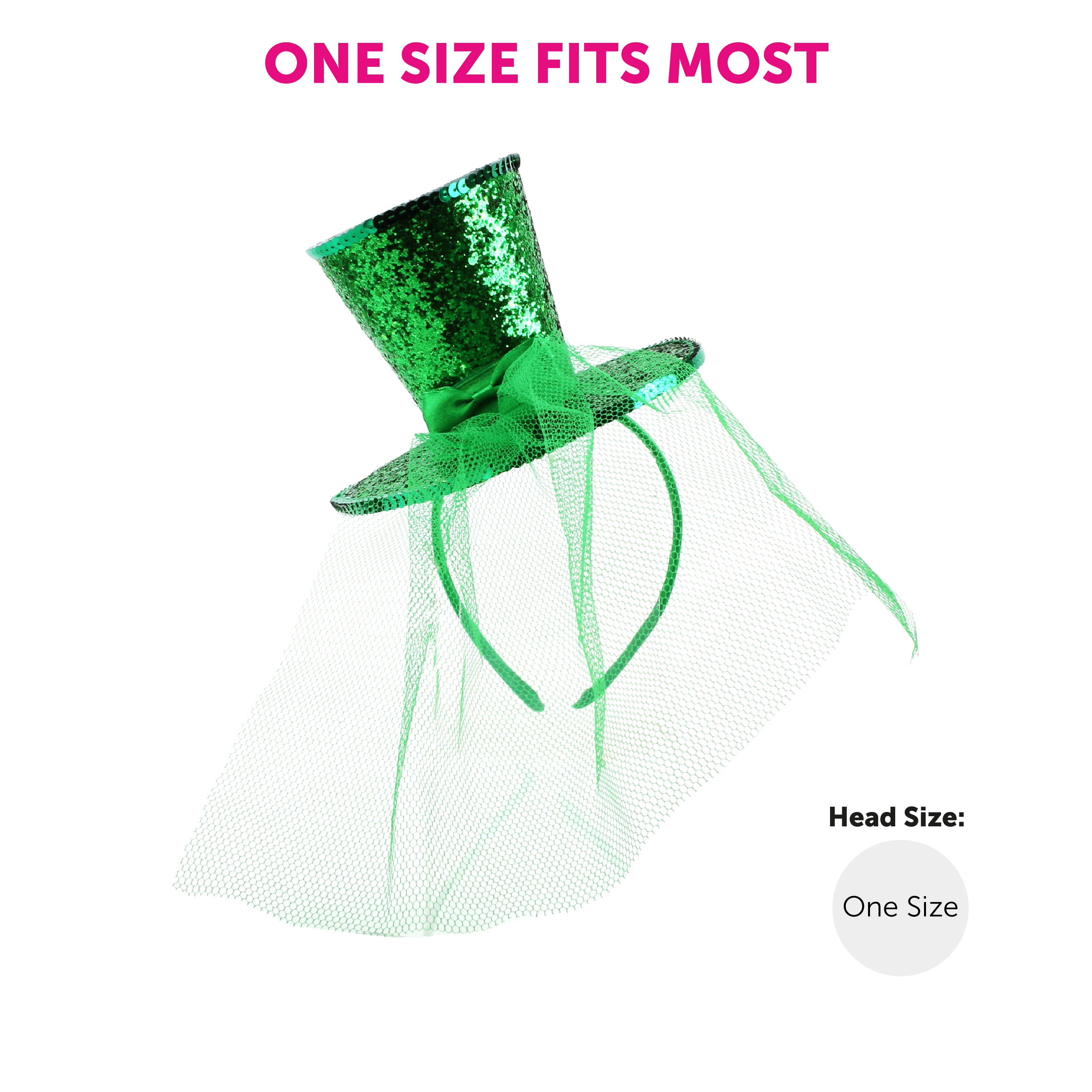 ACCESSORY SET DETAILS: This Green Accessory Set includes a Mini Green Glitter Fascinator Top Hat attached to an Alice Band with Sequin detail edges and a Green Veil, and an extremely soft Green Feather Boa!