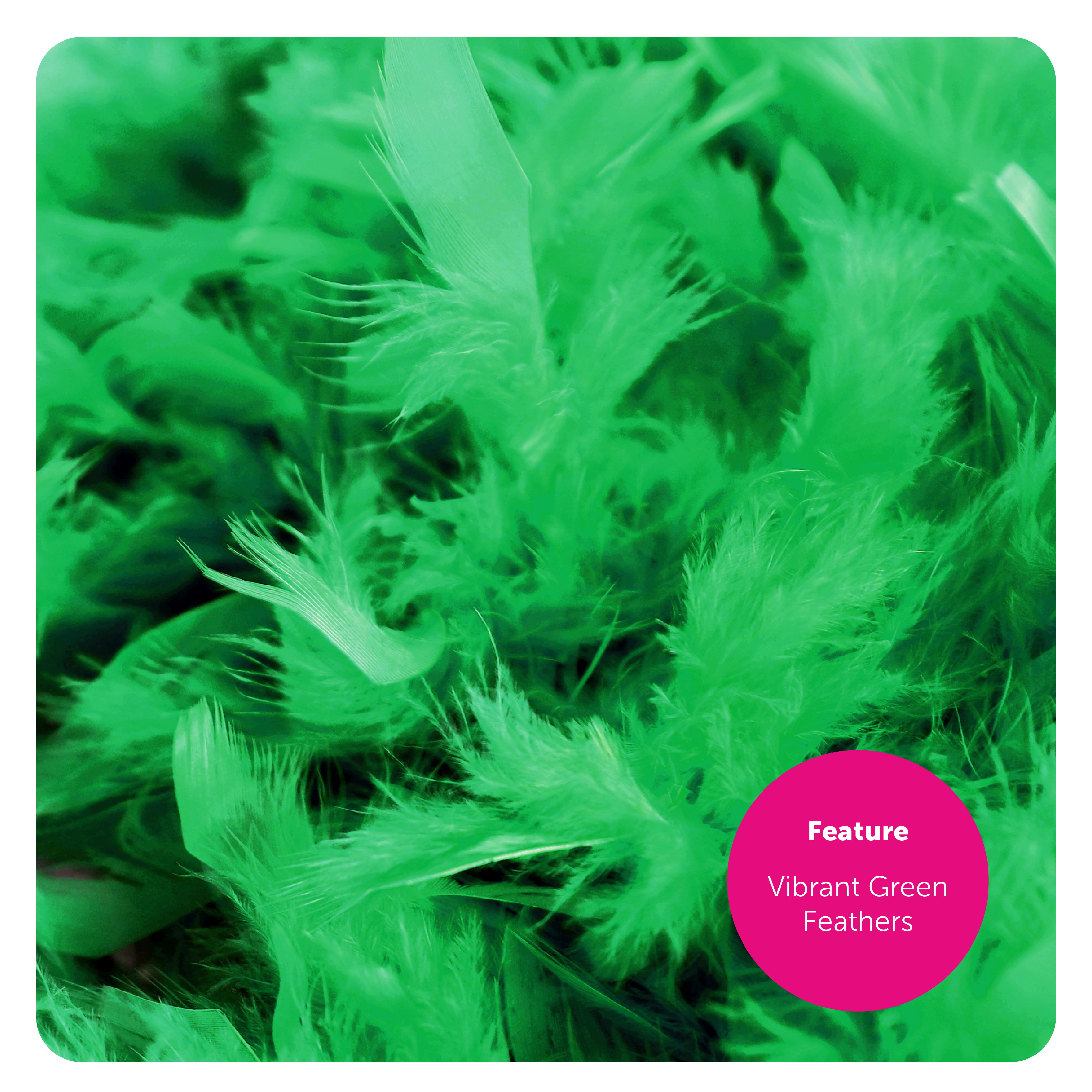 INCREDIBLY SOFT FEATHERS: Your Green Feather Boa is made with incredibly soft feathers sewn onto string - although the product is reusable, there may be some initial shedding, please shake the Feather Boa to rid of any loose feathers before wearing!