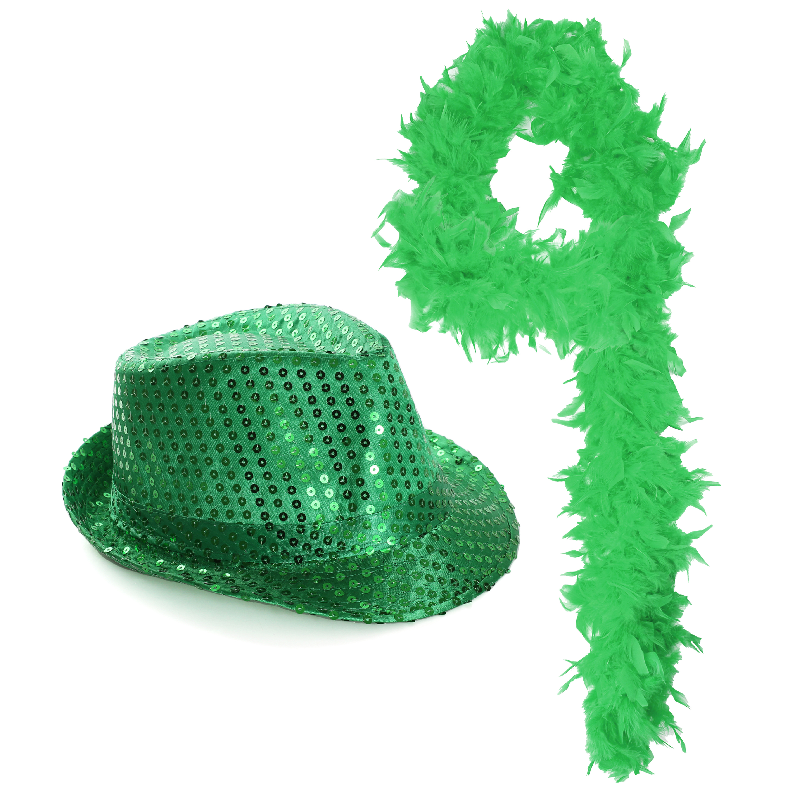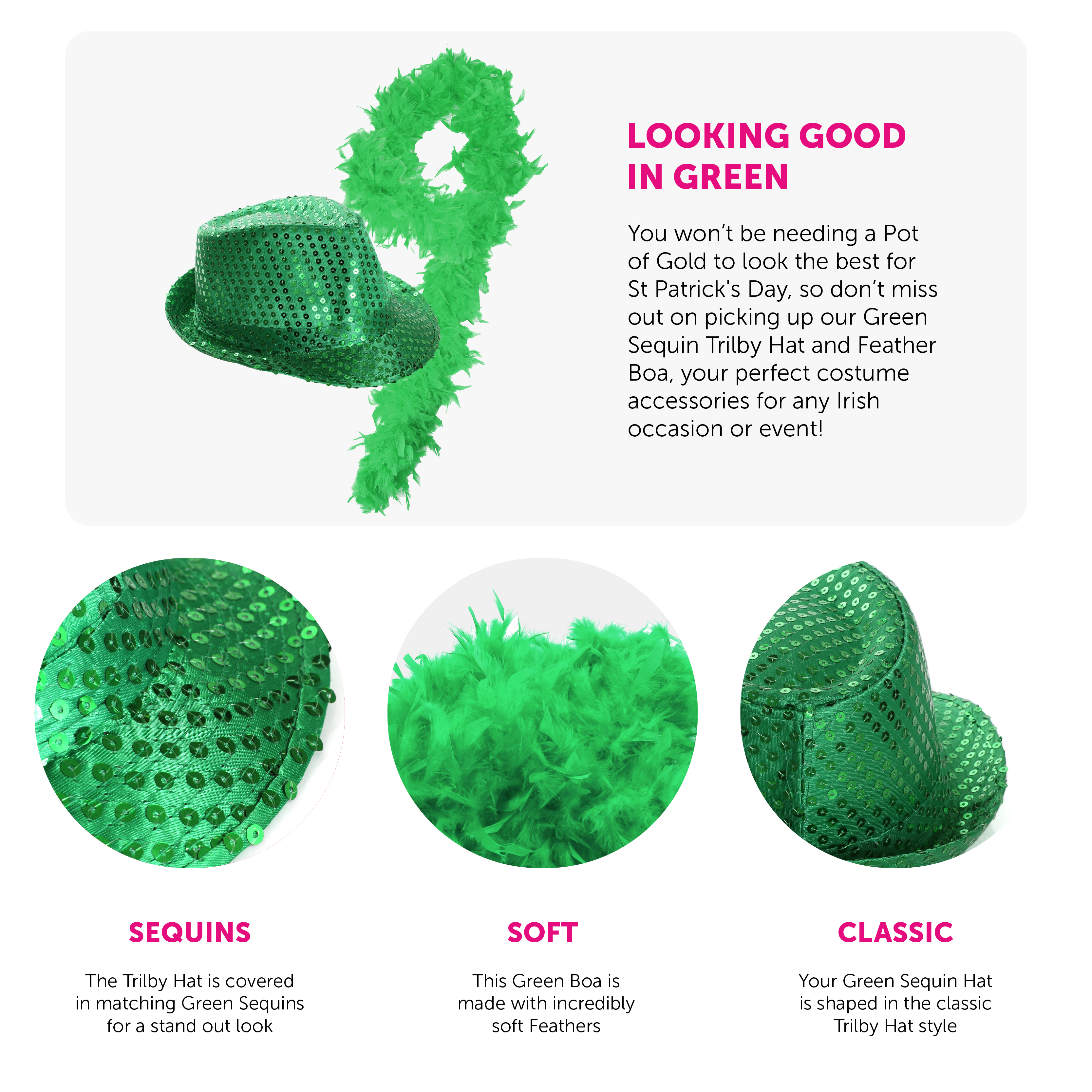 GREEN SEQUIN TRILBY HAT & FEATHER BOA: You won’t be needing a Pot of Gold to look the best for St Patrick's Day, so don’t miss out on picking up our Green Sequin Trilby Hat and Feather Boa, your perfect costume accessories for any Irish occasion or event!