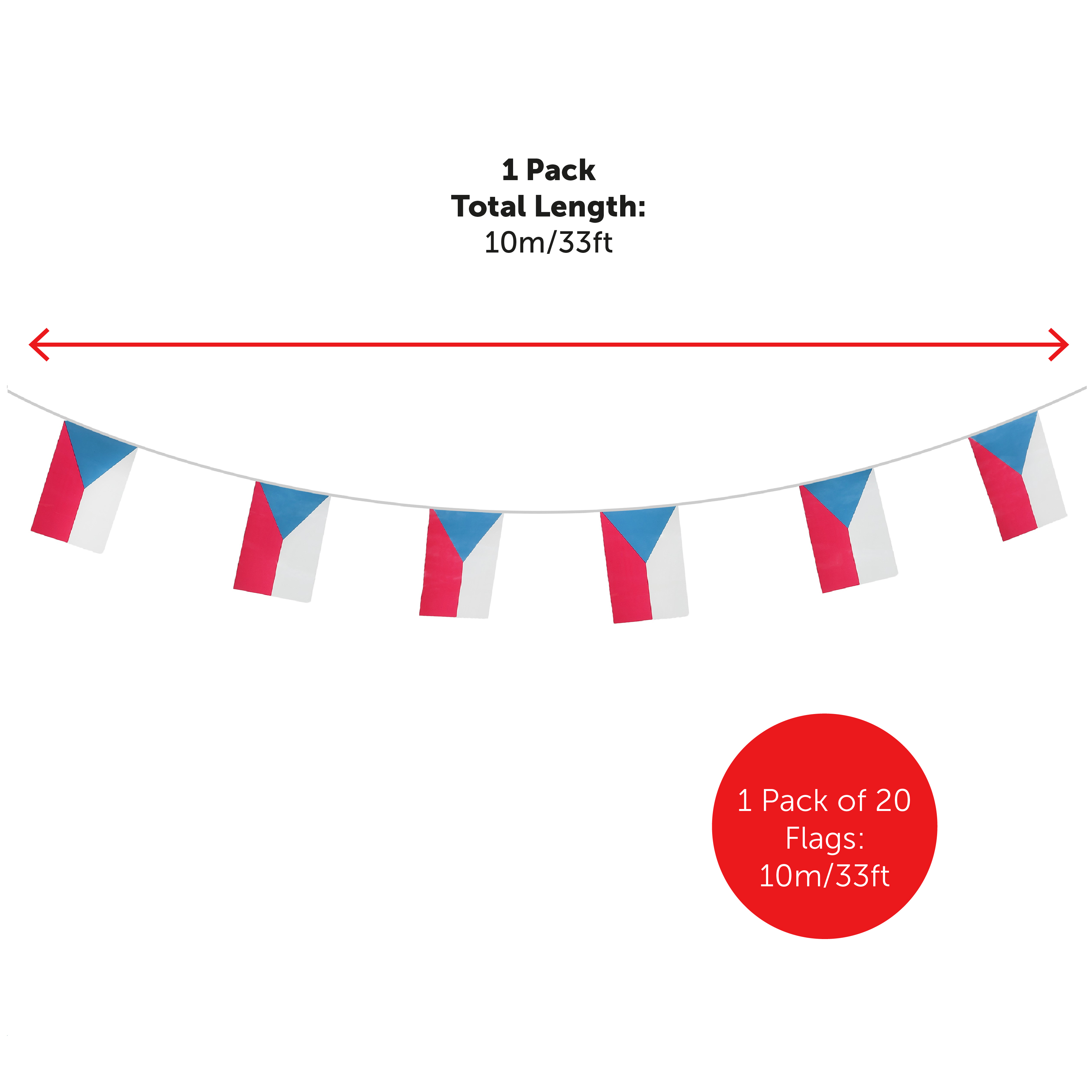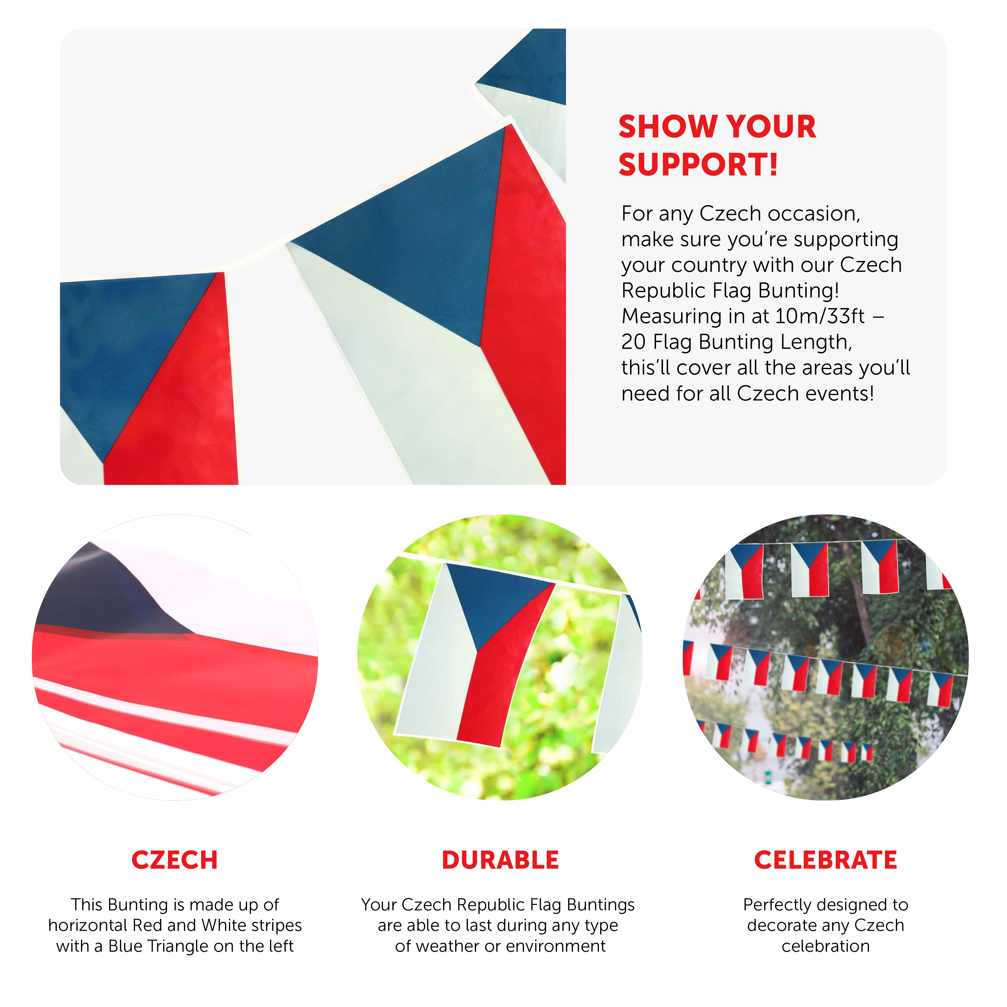 CZECH REPUBLIC FLAG BUNTING: For any Czech occasion, make sure you’re supporting your country with our Czech Flag Bunting! Measuring in at 10m/33ft – 20 Flag Bunting Length, this’ll cover all the areas you’ll need for all Czech events!
