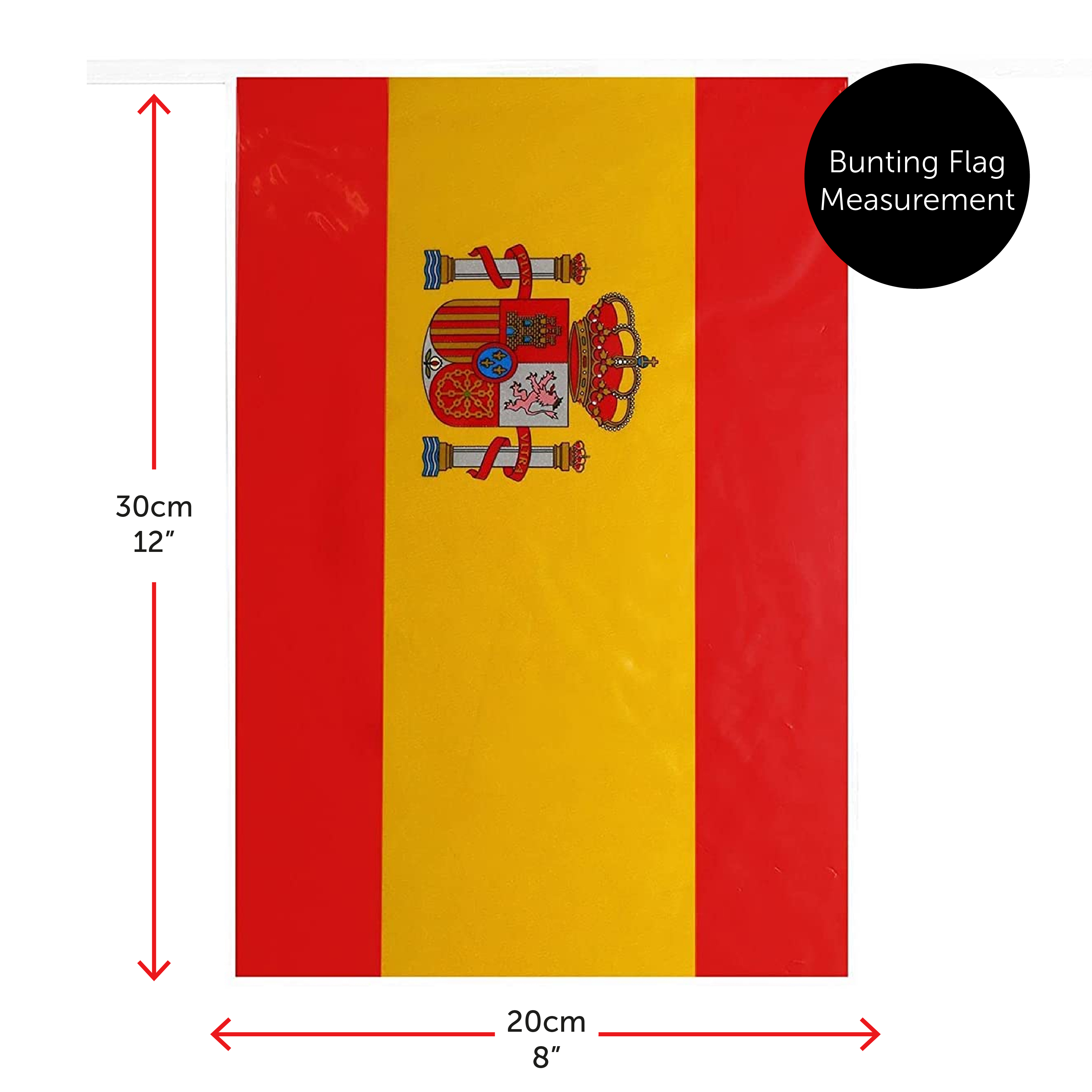 HIGH QUALITY FLAGS: These Bunting Flags are perfect for Spanish events, with their durability being perfect for all Weather, being extremely easy to clean and water resistant, the Spanish Flag Bunting is perfect for indoor and outdoor celebrations!