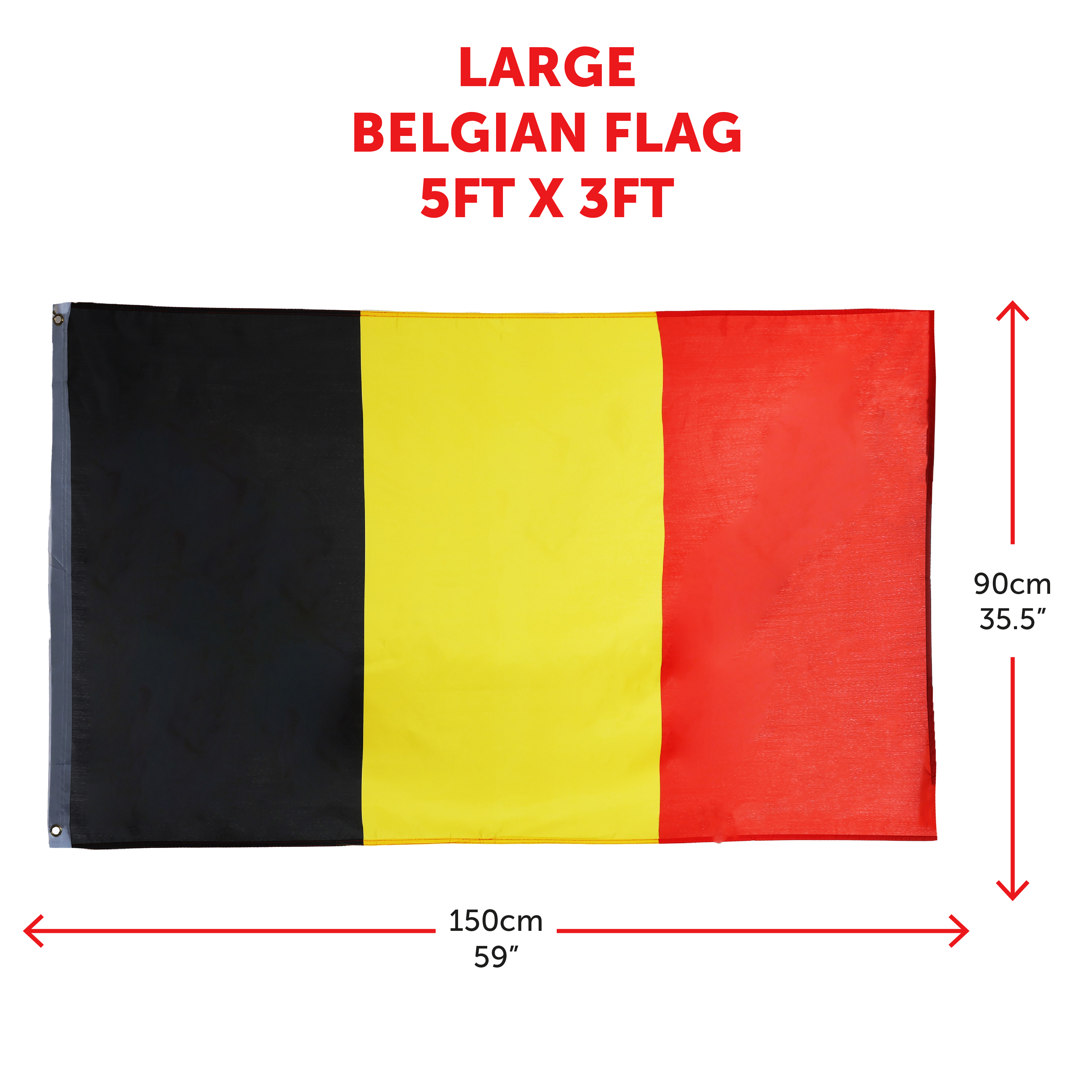 LARGE 5FT X 3FT BELGIUM FLAG: For any occasion, make sure you’re supporting your country with our Belgium Flag! Measuring in at 5ft x 3ft – this flag has you covered and will be all you’ll need for all events!