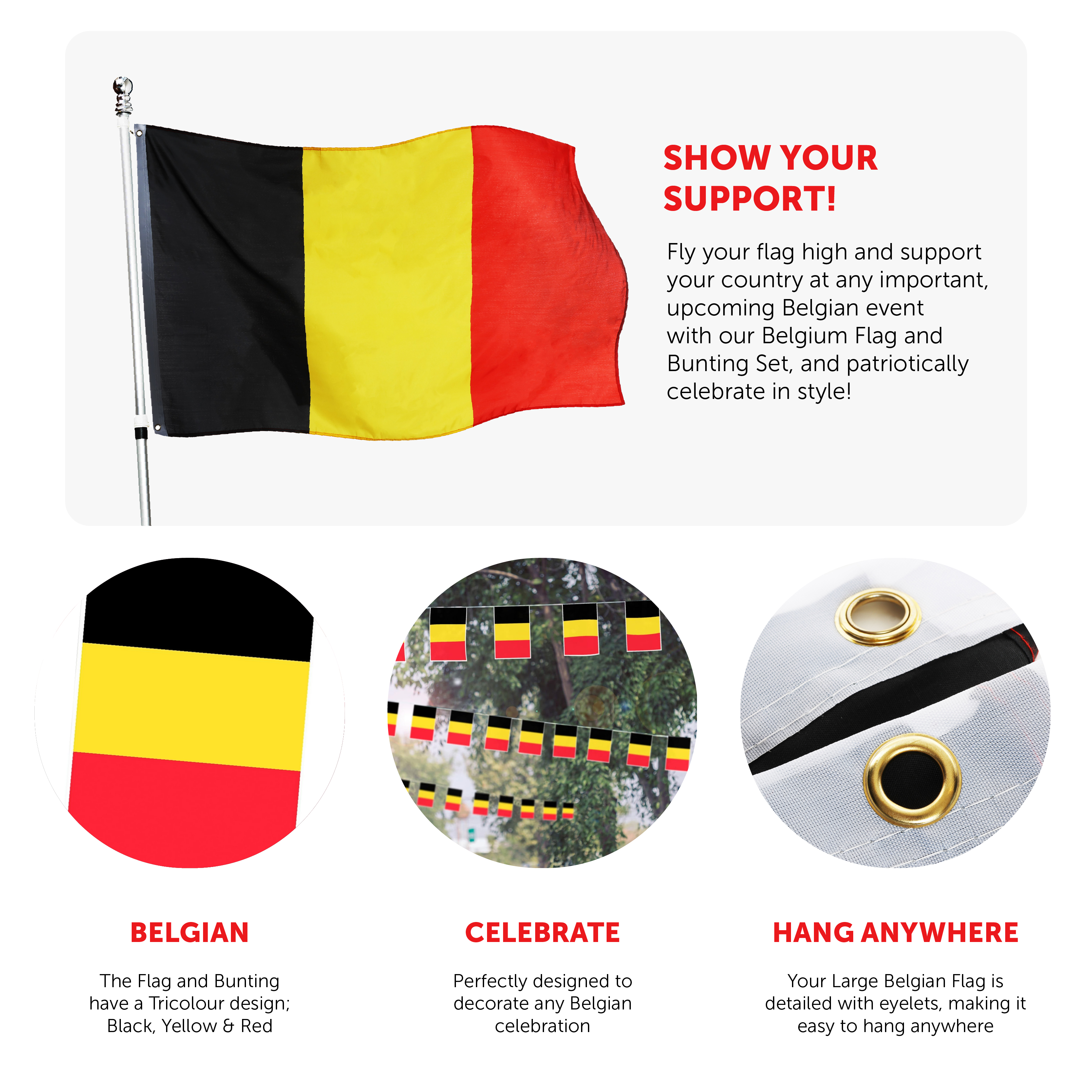 PERFECT FOR ANY BELGIAN EVENT: For any event or occasion, make sure you're picking up a 5ft x 3ft Belgium Flag for a day of support and celebration alongside family and friends!