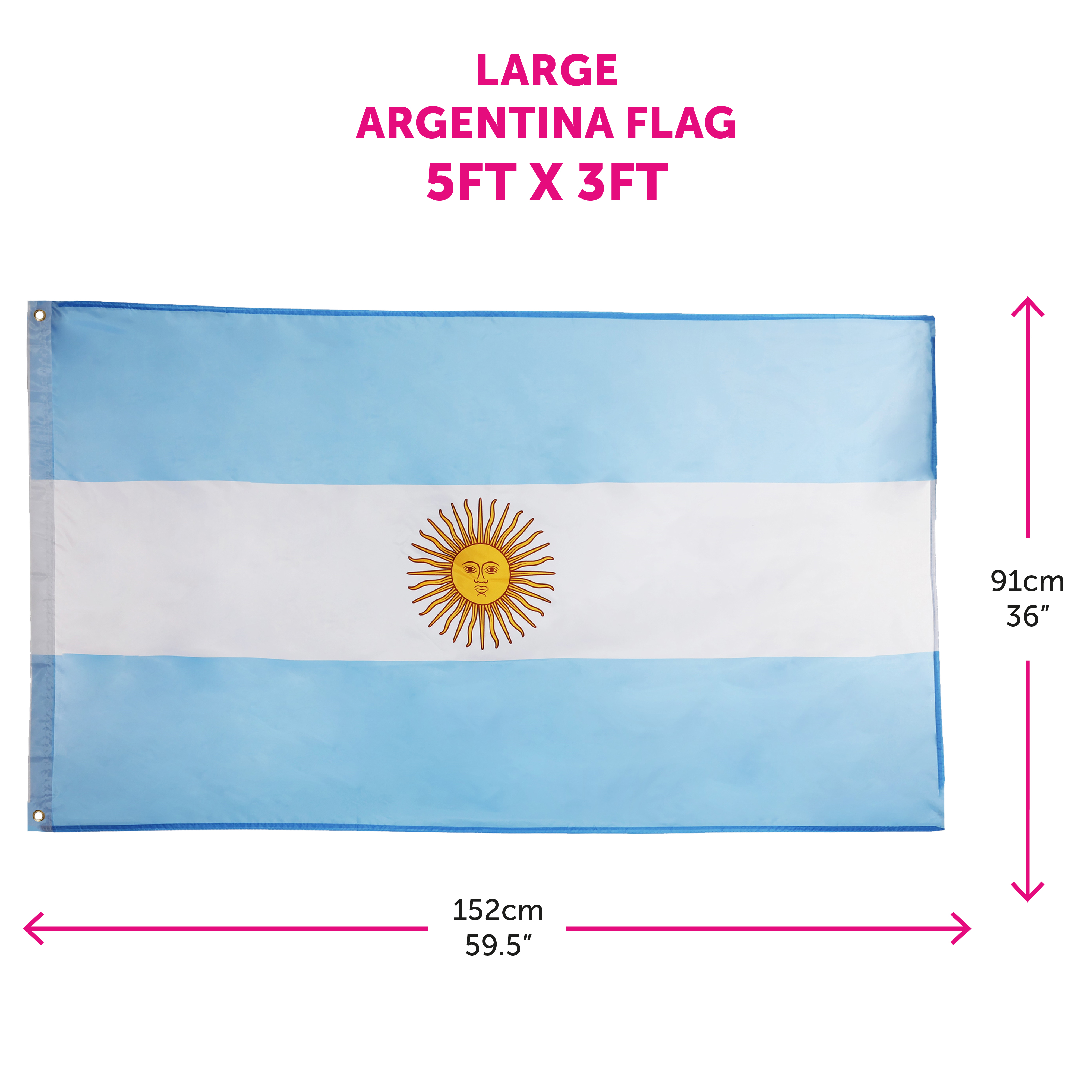 LARGE 5FT X 3FT ARGENTINA FLAG: For any occasion, make sure you’re supporting your Country with our Argentina Flag! Measuring in at 5ft x 3ft – this flag has you covered and will be all you’ll need for all events!