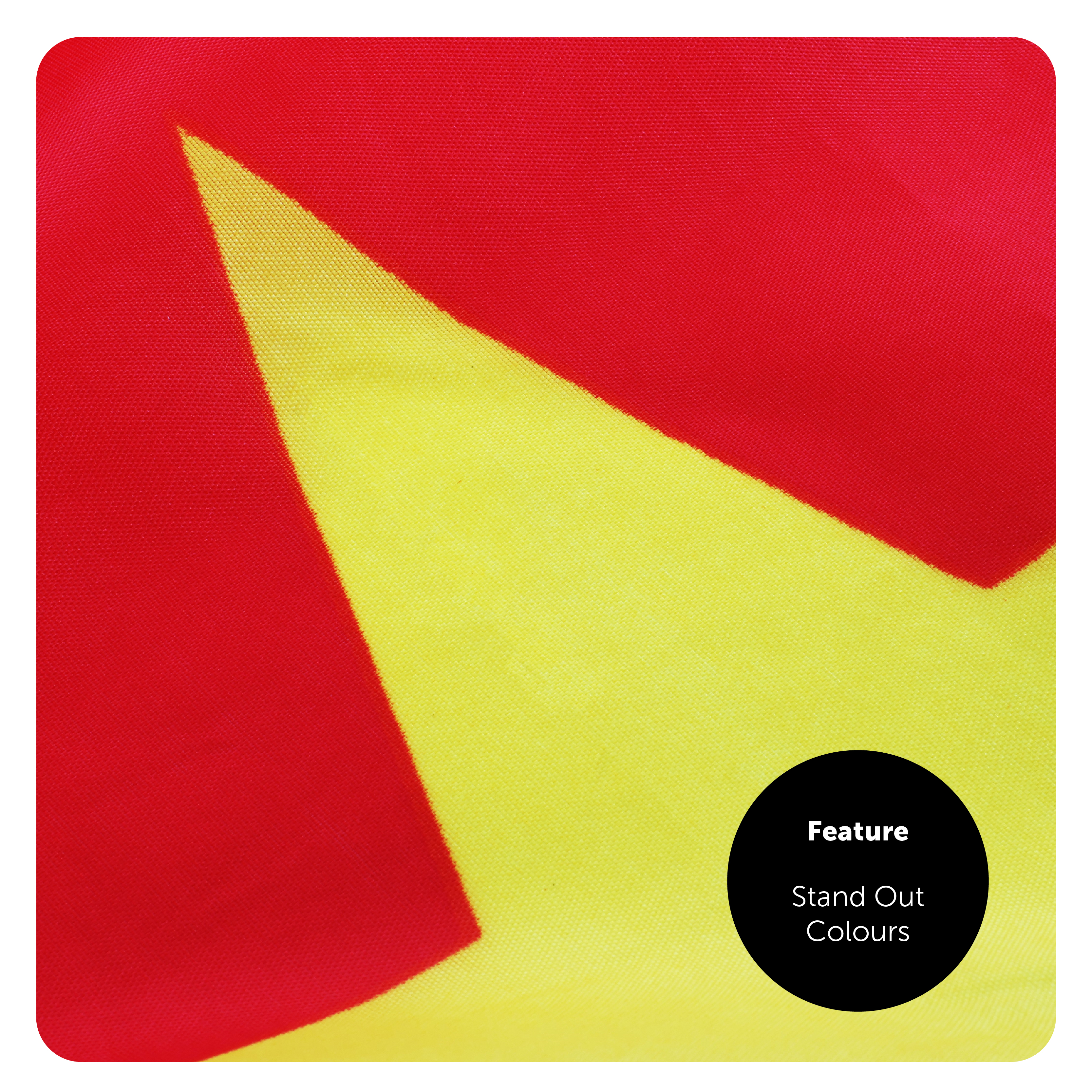 FLAG DETAILS: This Cameroon Flag has a vibrant, tricolour design with vertical Green, Red and Yellow stripes, and detailed with a Yellow Star in the centre, the Flag measures 5ft (152cm/60") in Width and 3ft (91cm/36") in Height, you'll have the perfect flag accessory to fly high for any event!