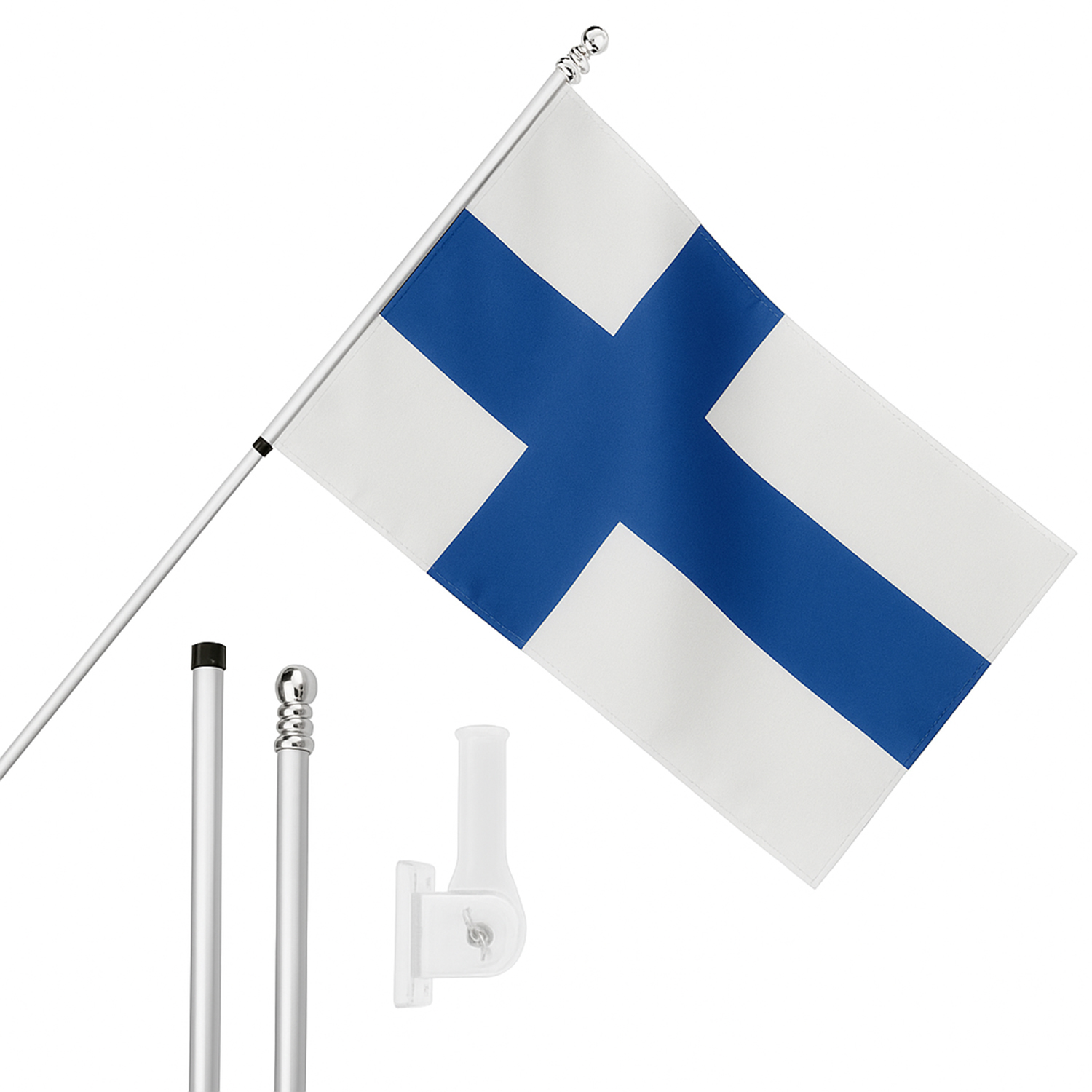 Celebrate Finland with our 5FT x 3FT blue and white Finnish flag, paired with a 6FT adjustable flag pole and wall bracket.