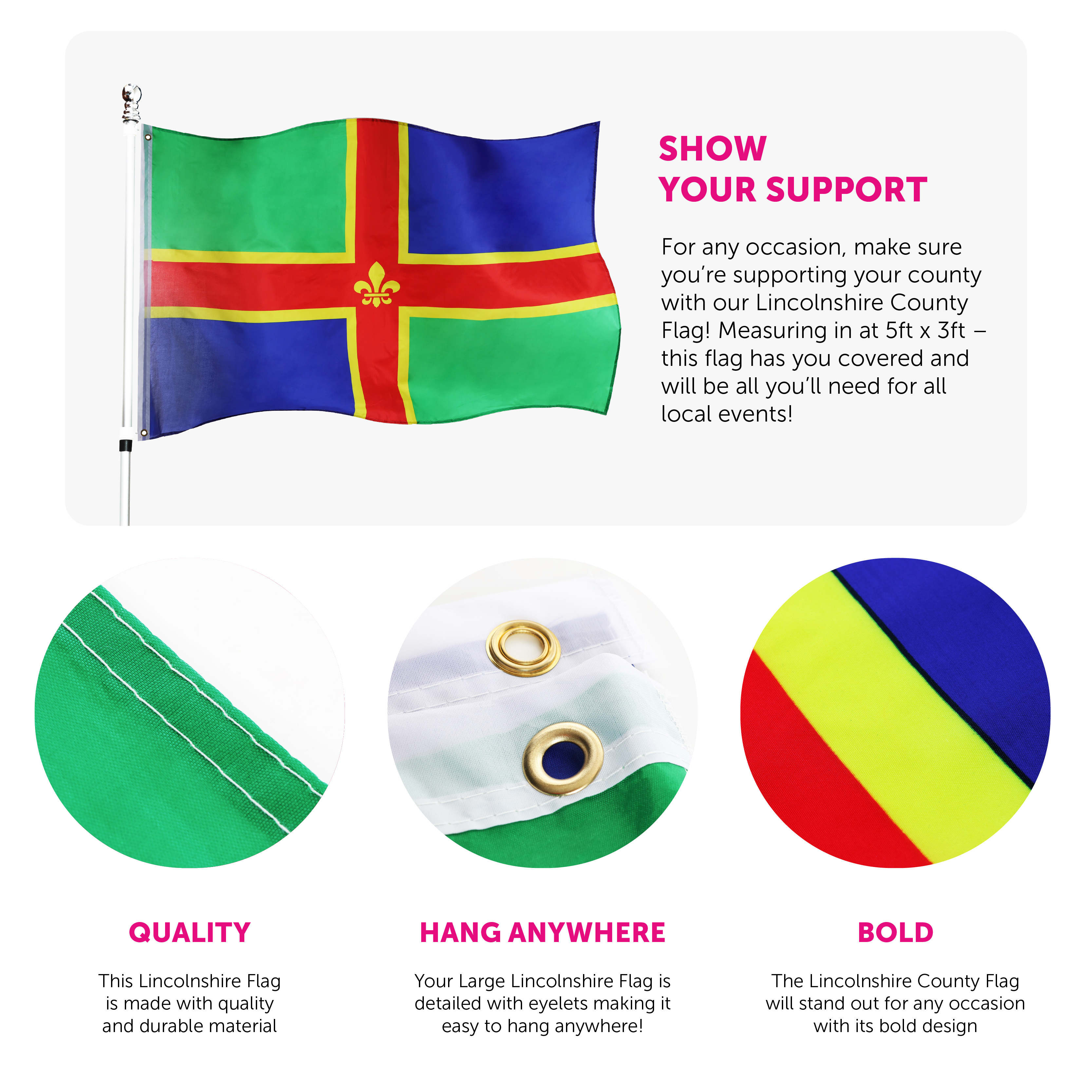 HIGH QUALITY FLAG: This 5ft x 3ft Lincolnshire Flag is perfect for any event, with its durability being perfect for most Weathers, it is extremely easy to dry clean, this Flag is perfect for indoor and outdoor celebrations!