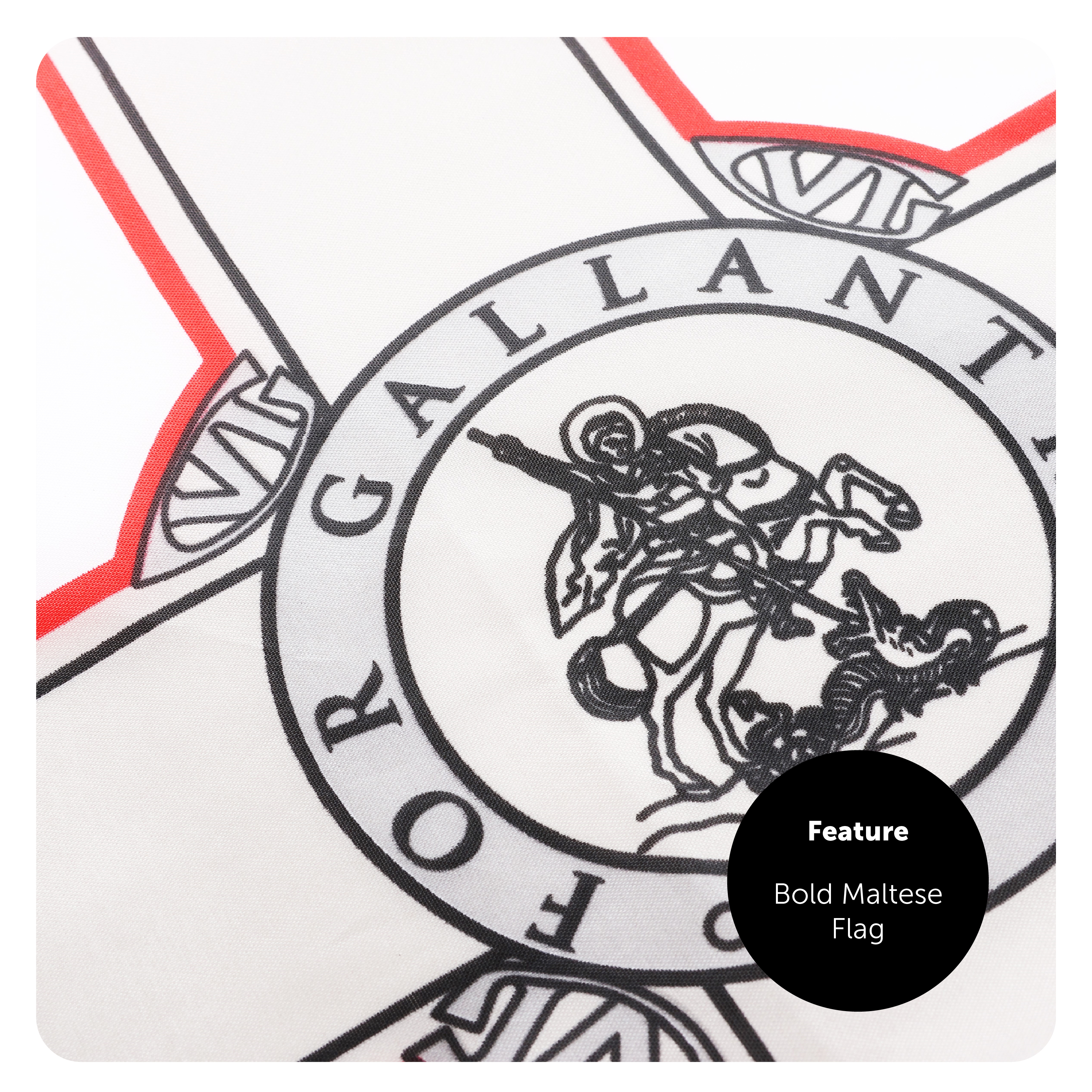 FLAG DETAILS: This Malta Flag is a vibrant Red and White Flag, with a Georges Cross in the top left corner, the Flag measures 5ft (152cm/60") in Width and 3ft (91cm/36") in Height, you'll have the perfect flag accessory to fly high for any event!