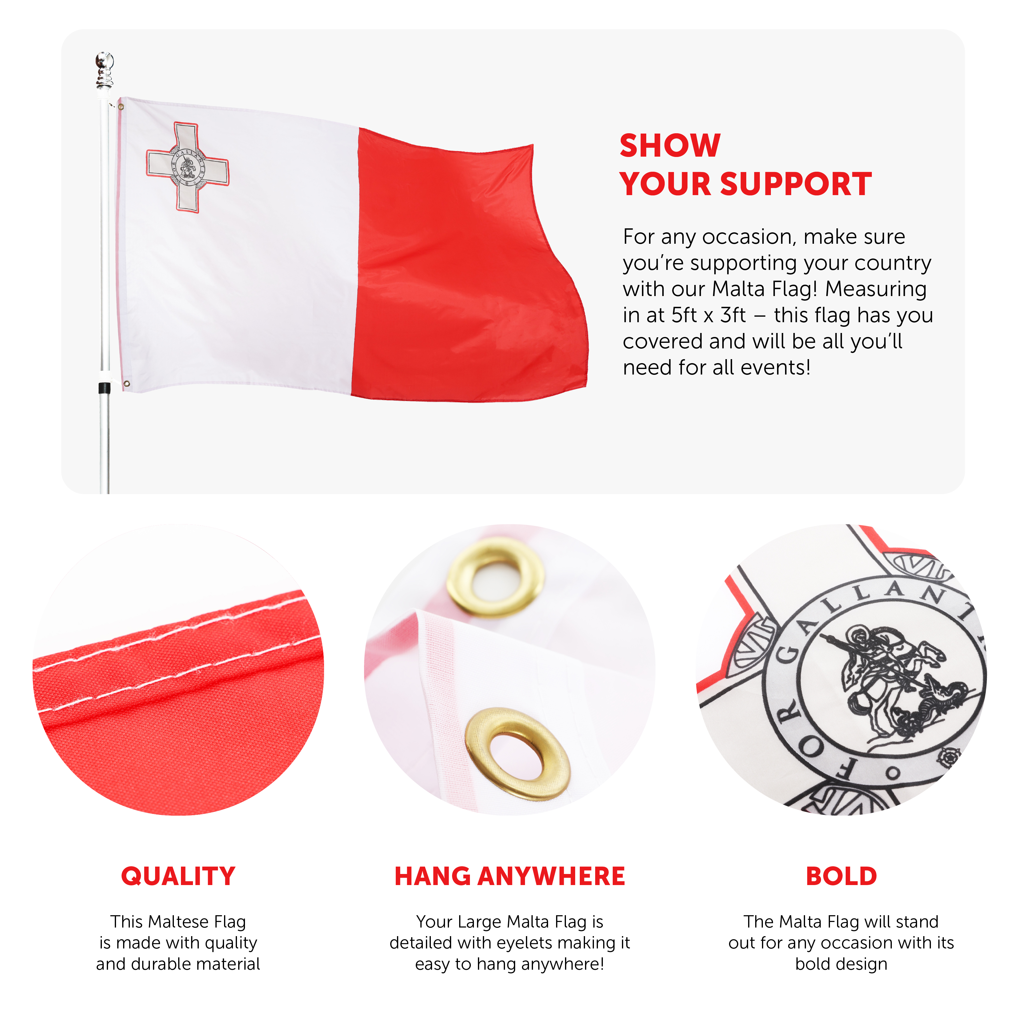 PERFECT FOR ANY MALTESE EVENT: For any Maltese event or occasion, make sure you're picking up a 5ft x 3ft Malta Flag for a day of support and celebration alongside family and friends!