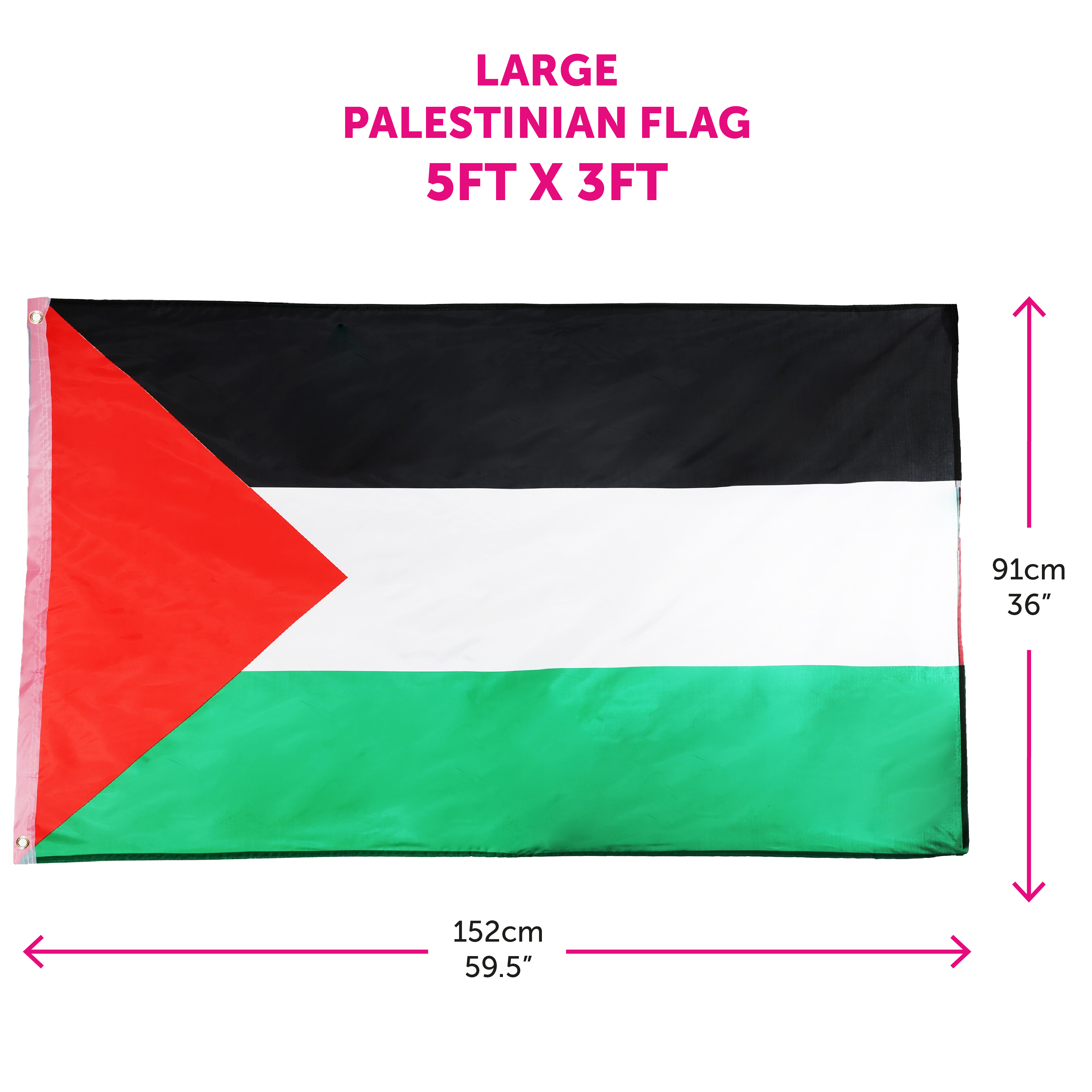 PERFECT FOR ANY PALESTINIAN EVENT: For any Palestinian event or occasion, make sure you're picking up a 5ft x 3ft Palestine Flag for a day of support and celebration alongside family and friends!