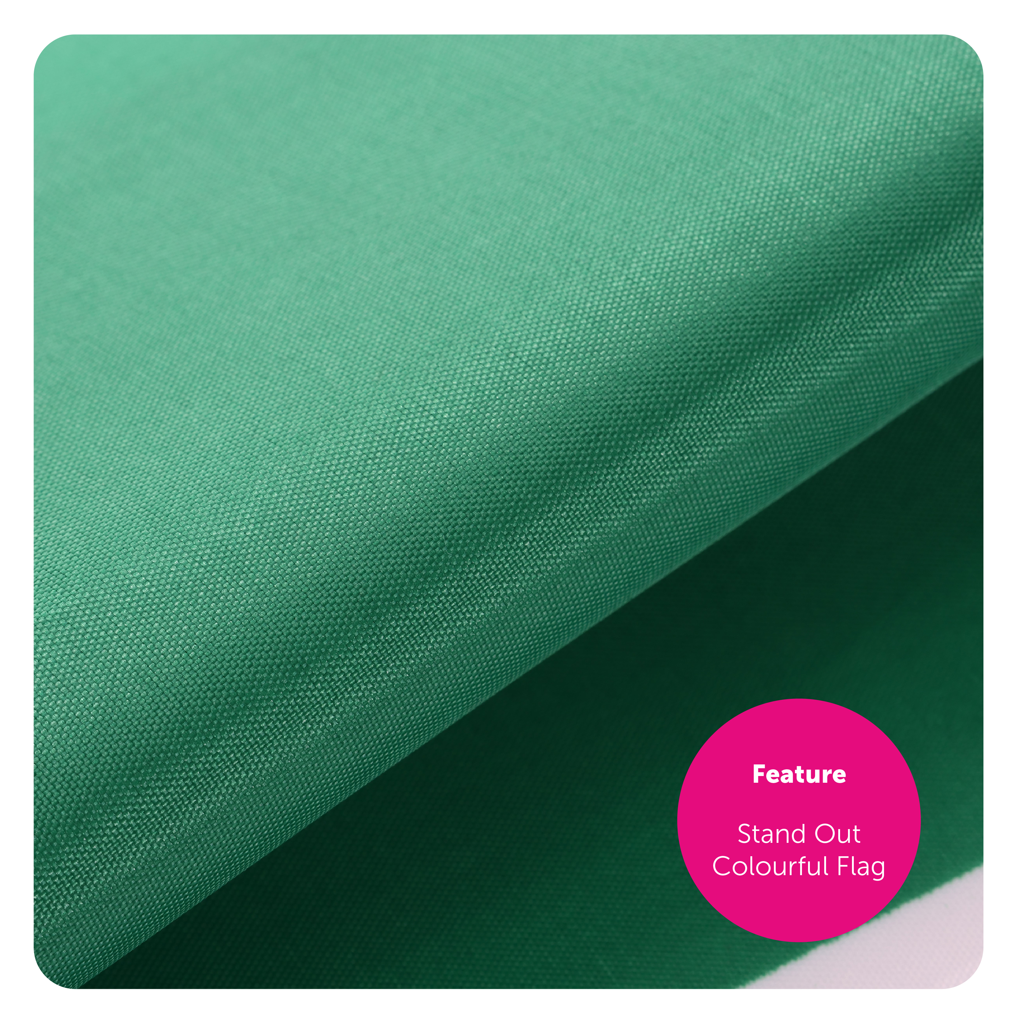 FLAG DETAILS: This Palestine Flag is a vibrant Black, White and Green striped Flag with Red detail on the left side, the Flag measures 5ft (152cm/60") in Width and 3ft (91cm/36") in Height, you'll have the perfect flag accessory to fly high for any event!