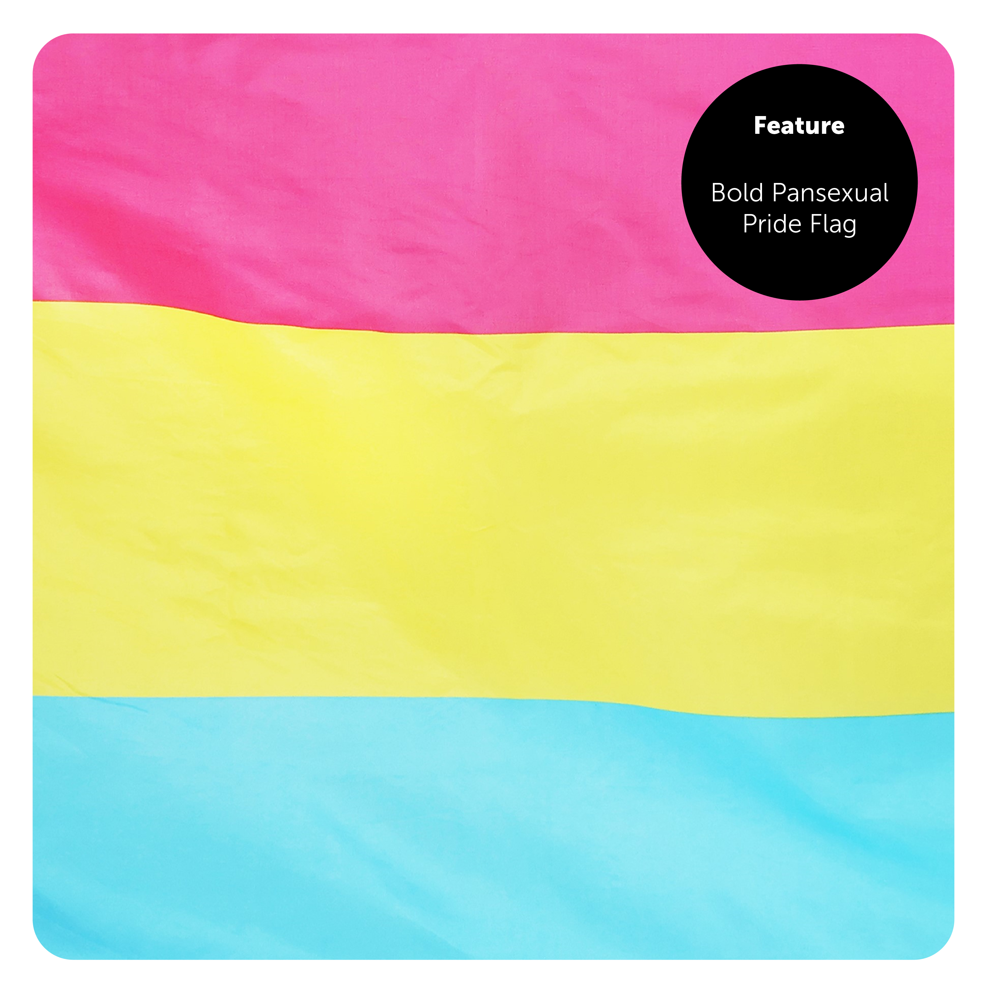 FLAG DETAILS: This Pansexual Pride Flag has a Tricolour design with vibrant Pink, Yellow and Blue horizontal stripes, the Flag measures 5ft (152cm/60") in Width and 3ft (91cm/36") in Height, you'll have the perfect flag accessory to fly high for any Pride event!