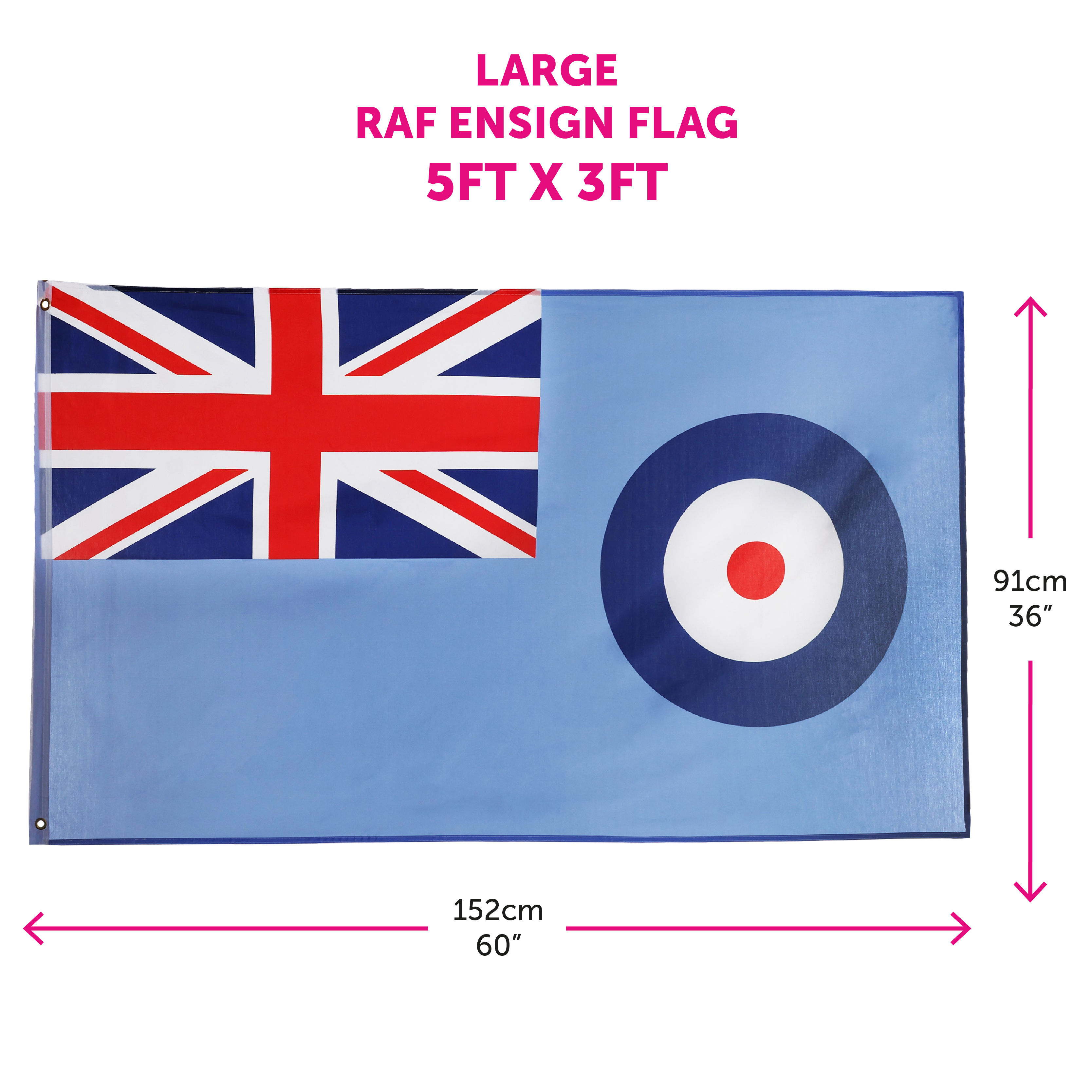 LARGE 5FT X 3FT RAF ENSIGN FLAG: For any occasion, make sure you’re showing support with our RAF Ensign Flag! Measuring in at 5ft x 3ft – this flag has you covered and will be all you’ll need for all events!