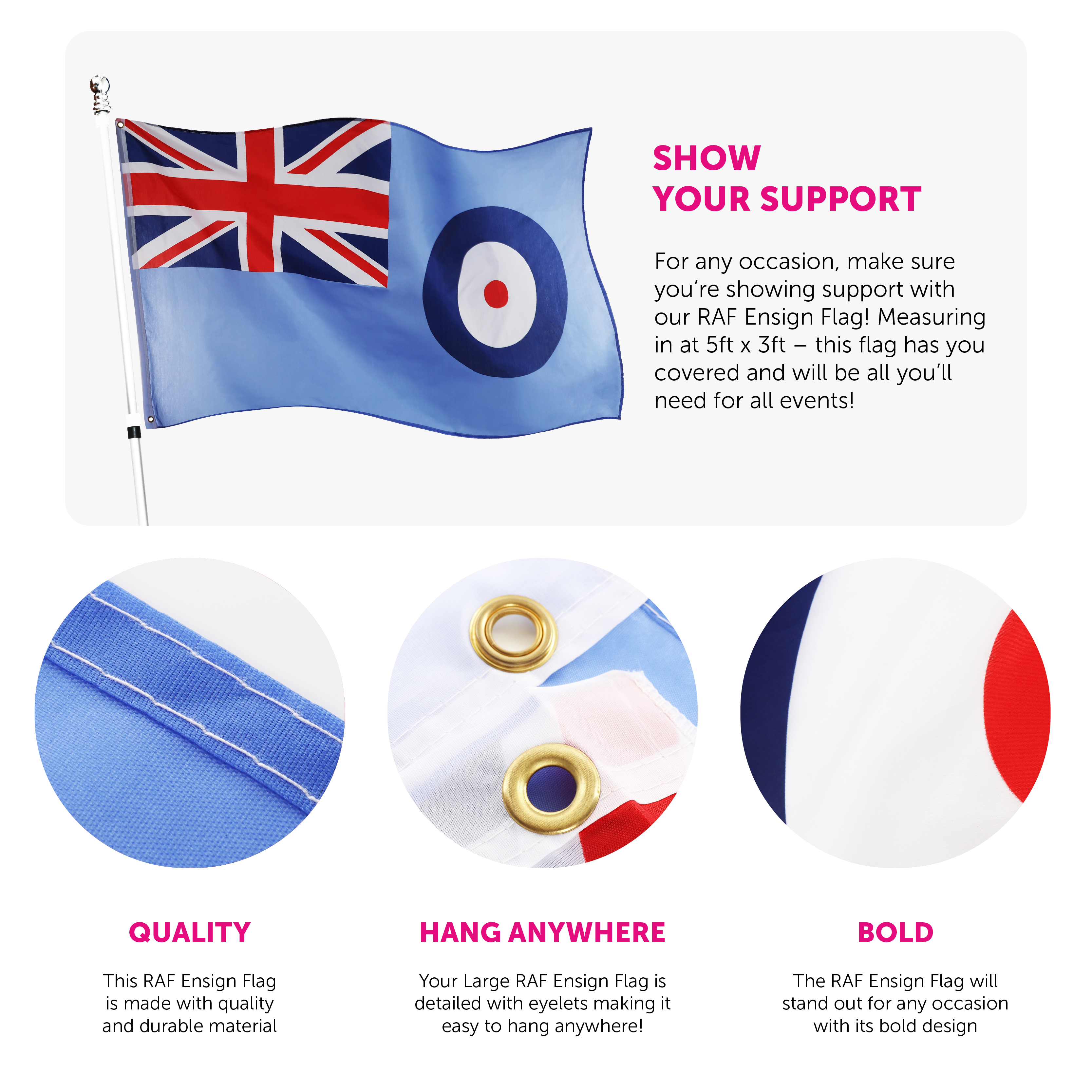 PERFECT FOR ANY EVENT: For any event or occasion, make sure you're picking up a 5ft x 3ft RAF Ensign Flag for a day of support alongside family and friends!
