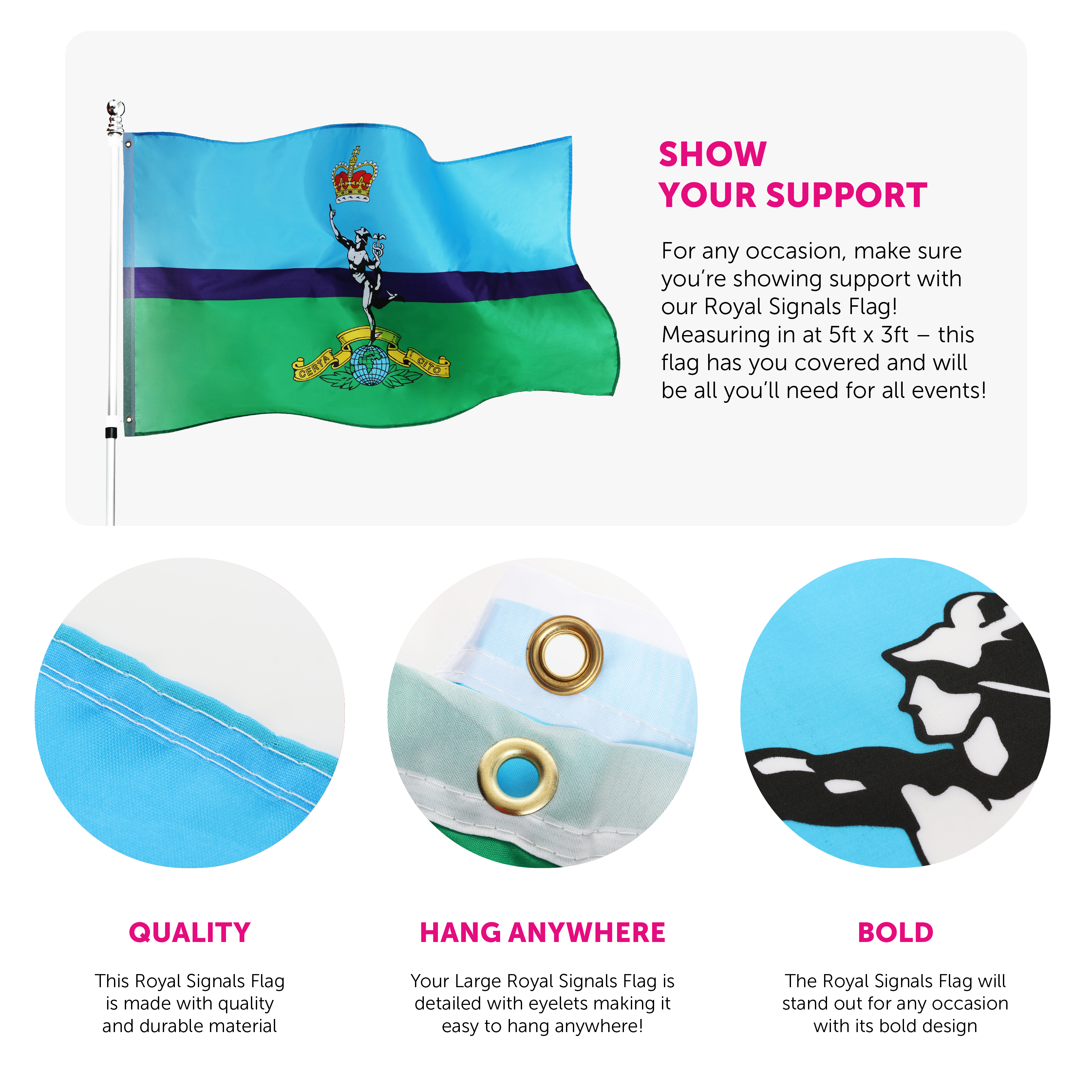 PERFECT FOR ANY EVENT: For any event or occasion, make sure you're picking up a 5ft x 3ft Royal Signals Flag for a day of support alongside family and friends!