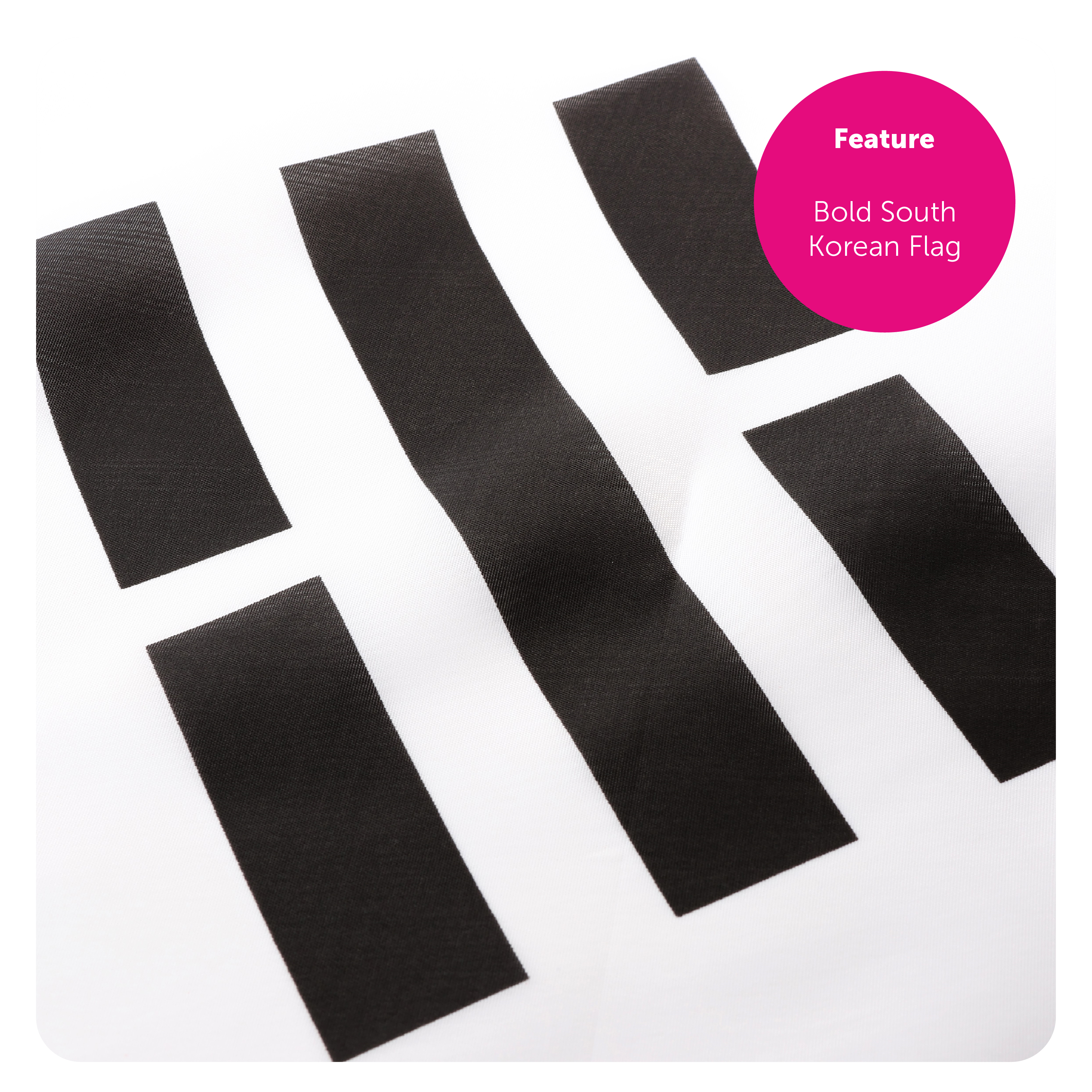 FLAG DETAILS: This South Korean Flag, also known as the Taegeukgi, has a White background, with a Red and Blue Taegeuk in its center, and detailed with four Black Trigrams, one in each corner! The Flag measures 5ft (152cm/60") in Width and 3ft (91cm/36") in Height, you'll have the perfect flag accessory to fly high for any event!