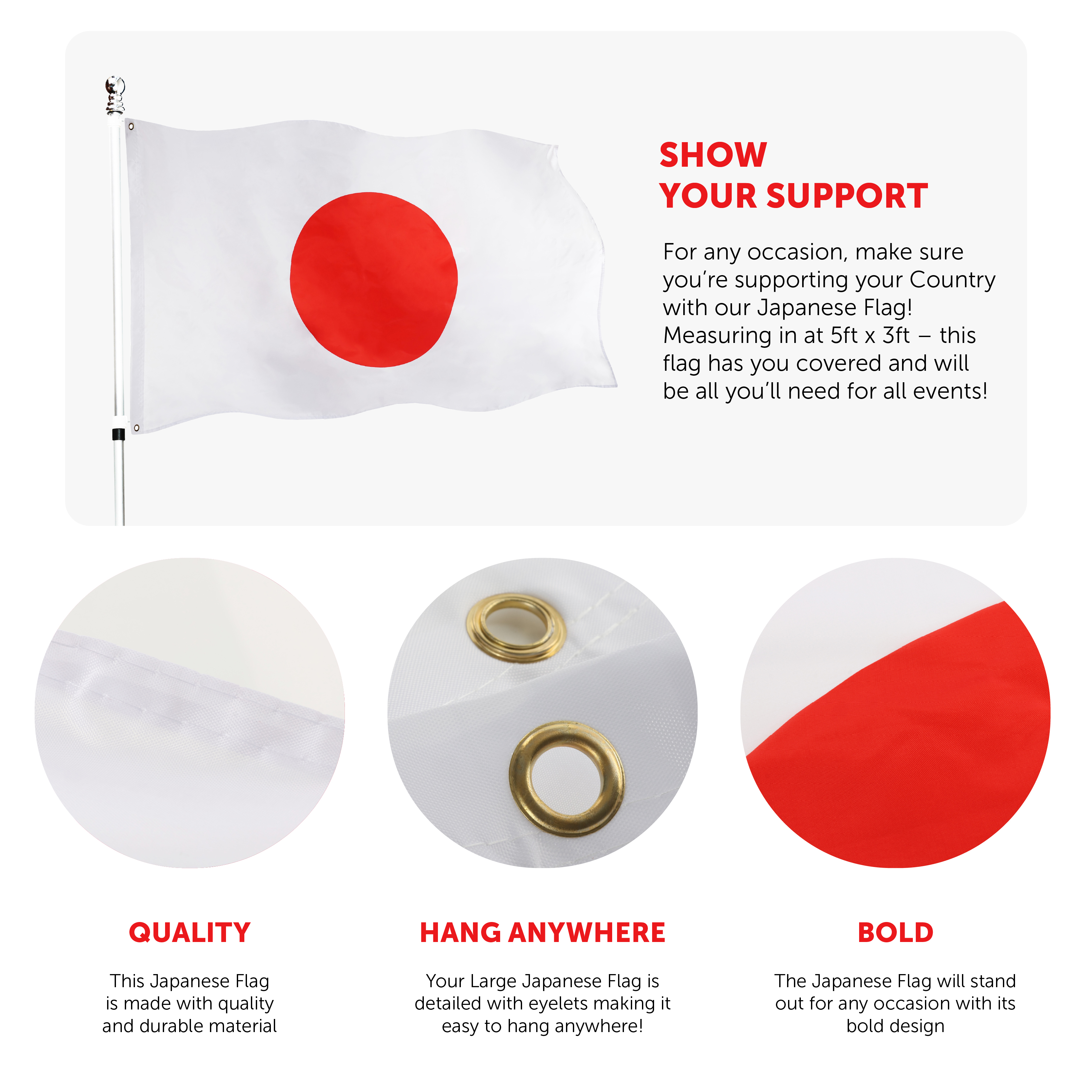 PERFECT FOR ANY JAPANESE EVENT: For any event or occasion, make sure you're picking up a 5ft x 3ft Japan Flag for a day of support and celebration alongside family and friends!