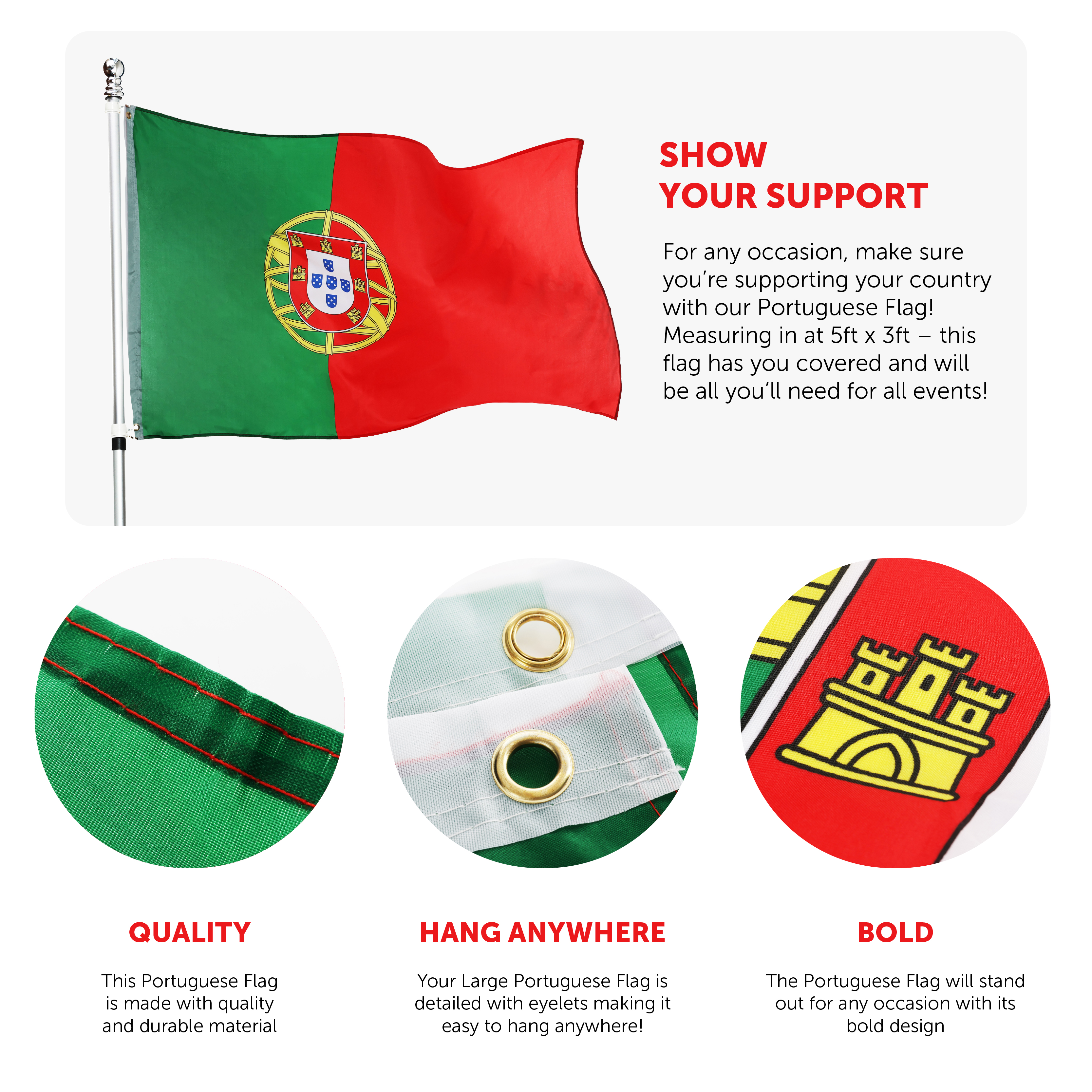 PERFECT FOR ANY PORTUGUESE EVENT: For any Portuguese event or occasion, make sure you're picking up a 5ft x 3ft Portugal Flag for a day of support and celebration alongside family and friends!