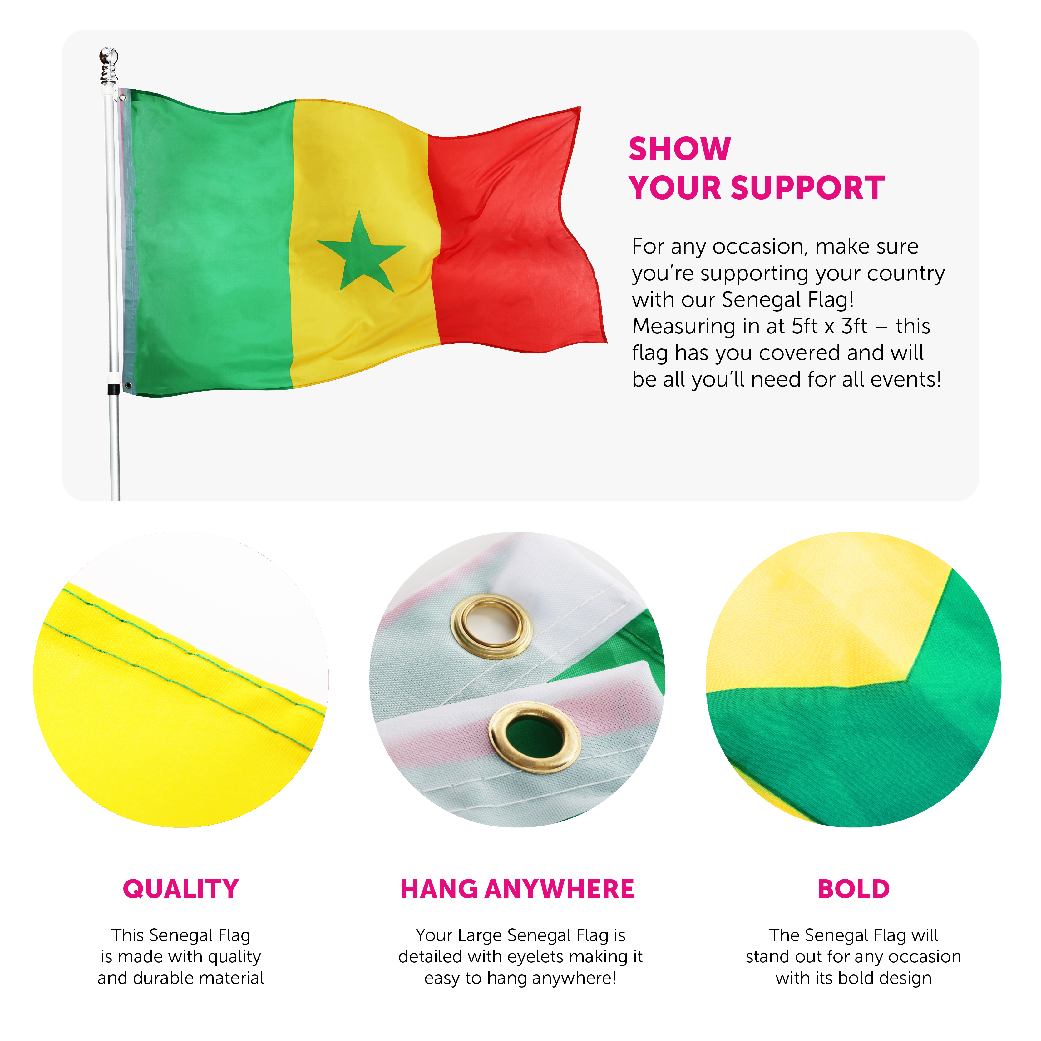 HIGH QUALITY FLAG: This 5ft x 3ft Senegal Flag is perfect for any events, with its durability being perfect for most Weathers, it is extremely easy to dry clean, this Senegal Flag is perfect for indoor and outdoor celebrations!