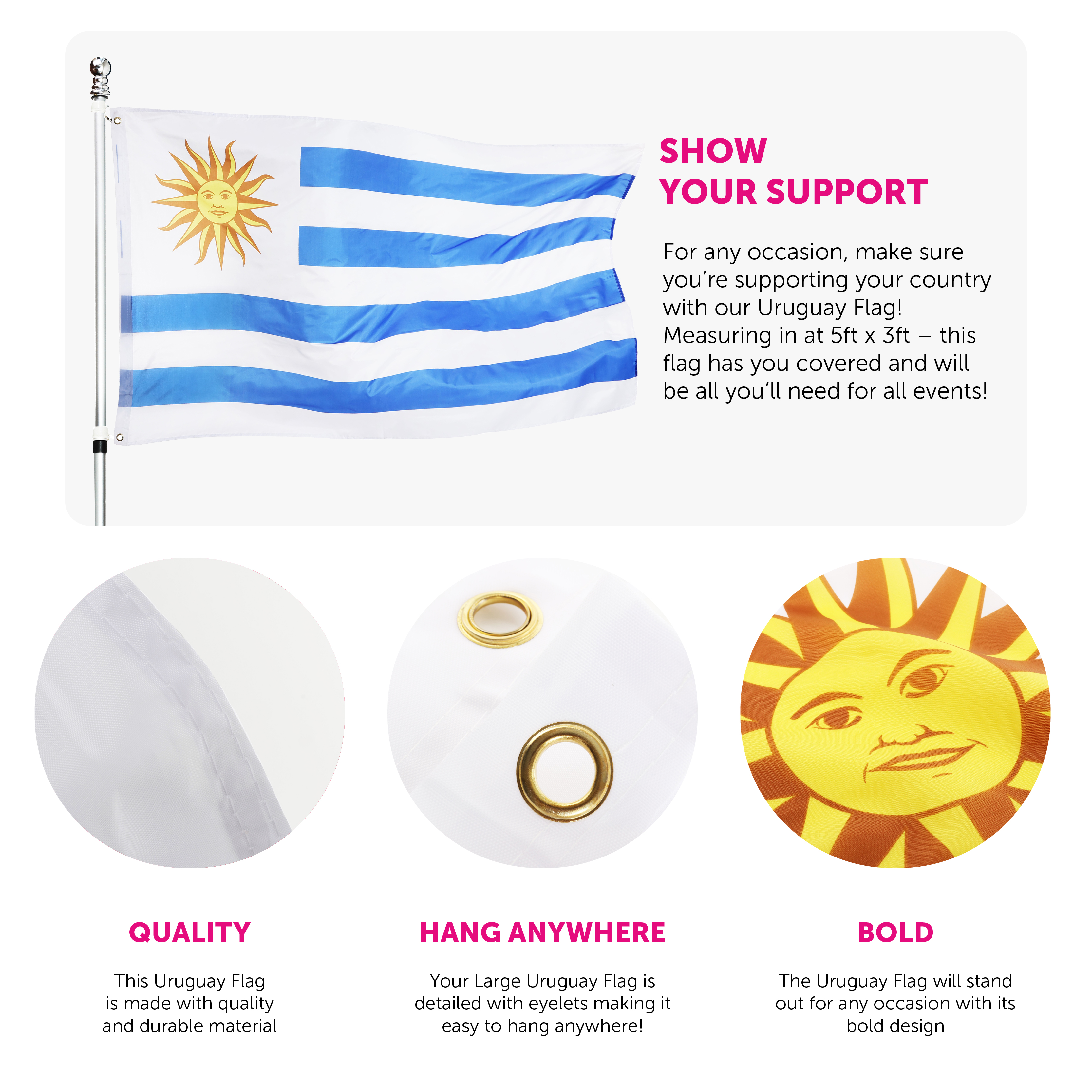 PERFECT FOR ANY EVENT: For any event or occasion, make sure you're picking up a 5ft x 3ft Uruguay Flag for a day of support and celebration alongside family and friends!
