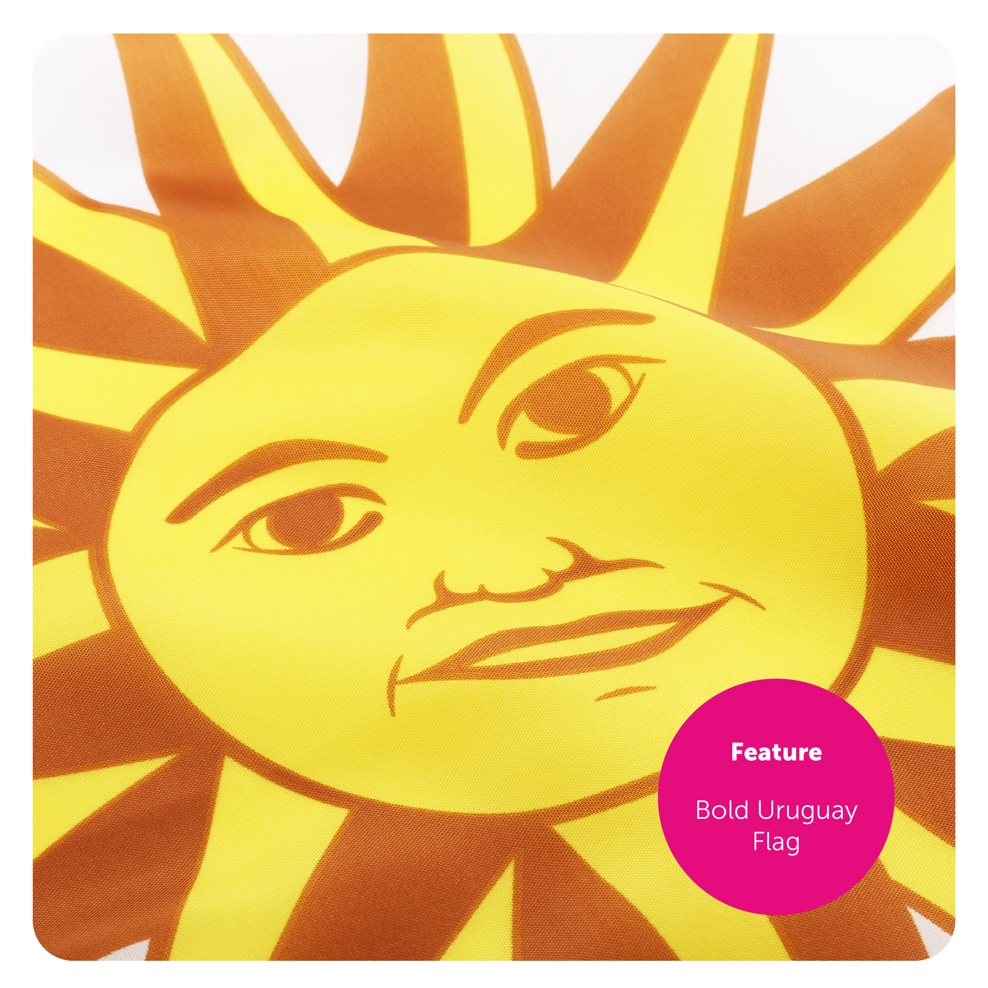 FLAG DETAILS: This Uruguay Flag is a vibrant Blue and White striped Flag, with a Golden Yellow Sun detailed in the top left corner, the Flag measures 5ft (152cm/60") in Width and 3ft (91cm/36") in Height, you'll have the perfect flag accessory to fly high for any event!