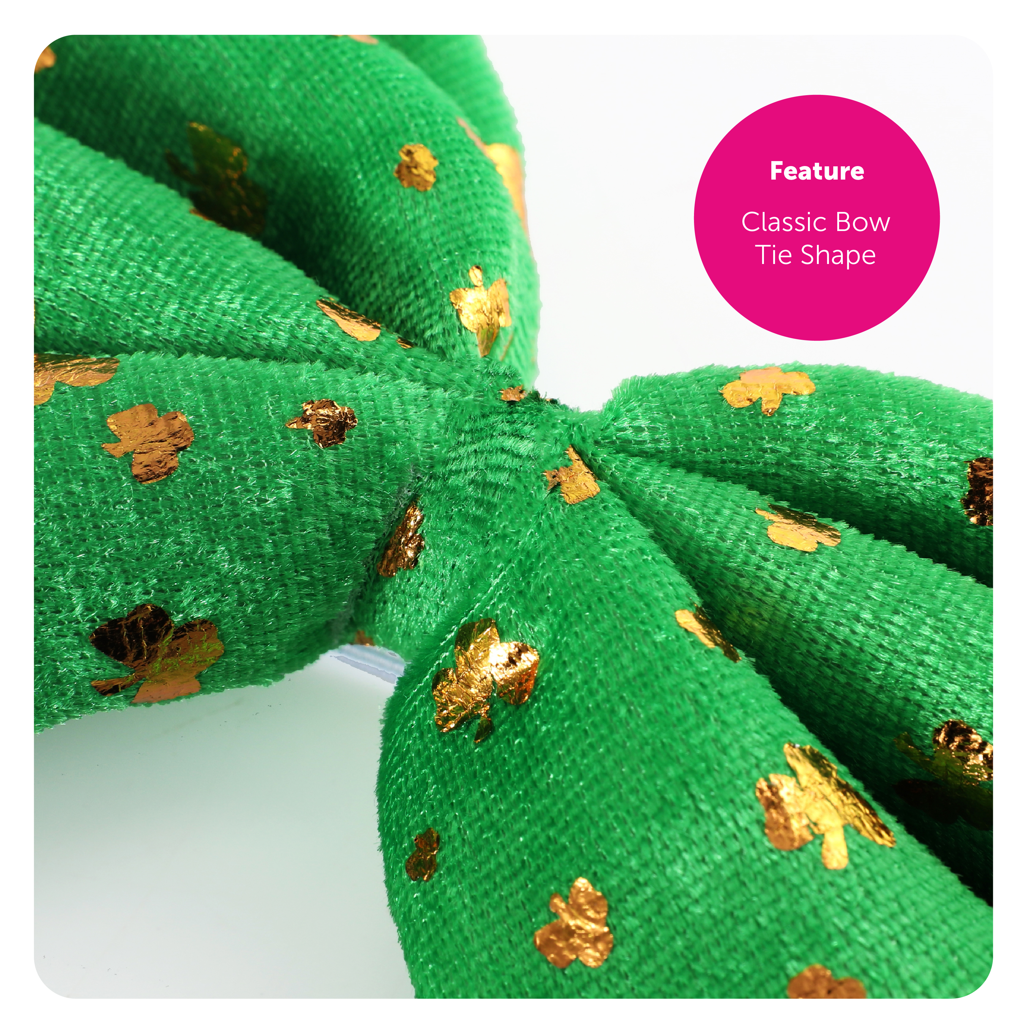 AVAILABLE IN ONE SIZE: As it is attached to an elastic string, this Jumbo Shamrock Bow Tie is designed to be one size - allowing most to wear it comfortably!