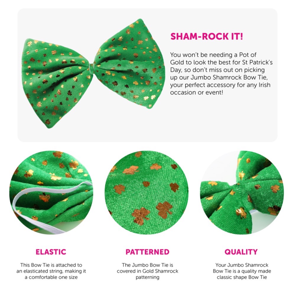 ST PATRICK'S DAY JUMBO SHAMROCK BOW TIE: You won’t be needing a Pot of Gold to look the best for St Patrick's Day, so don’t miss out on picking up our Jumbo Shamrock Bow Tie, your perfect accessory for any Irish occasion or event!
