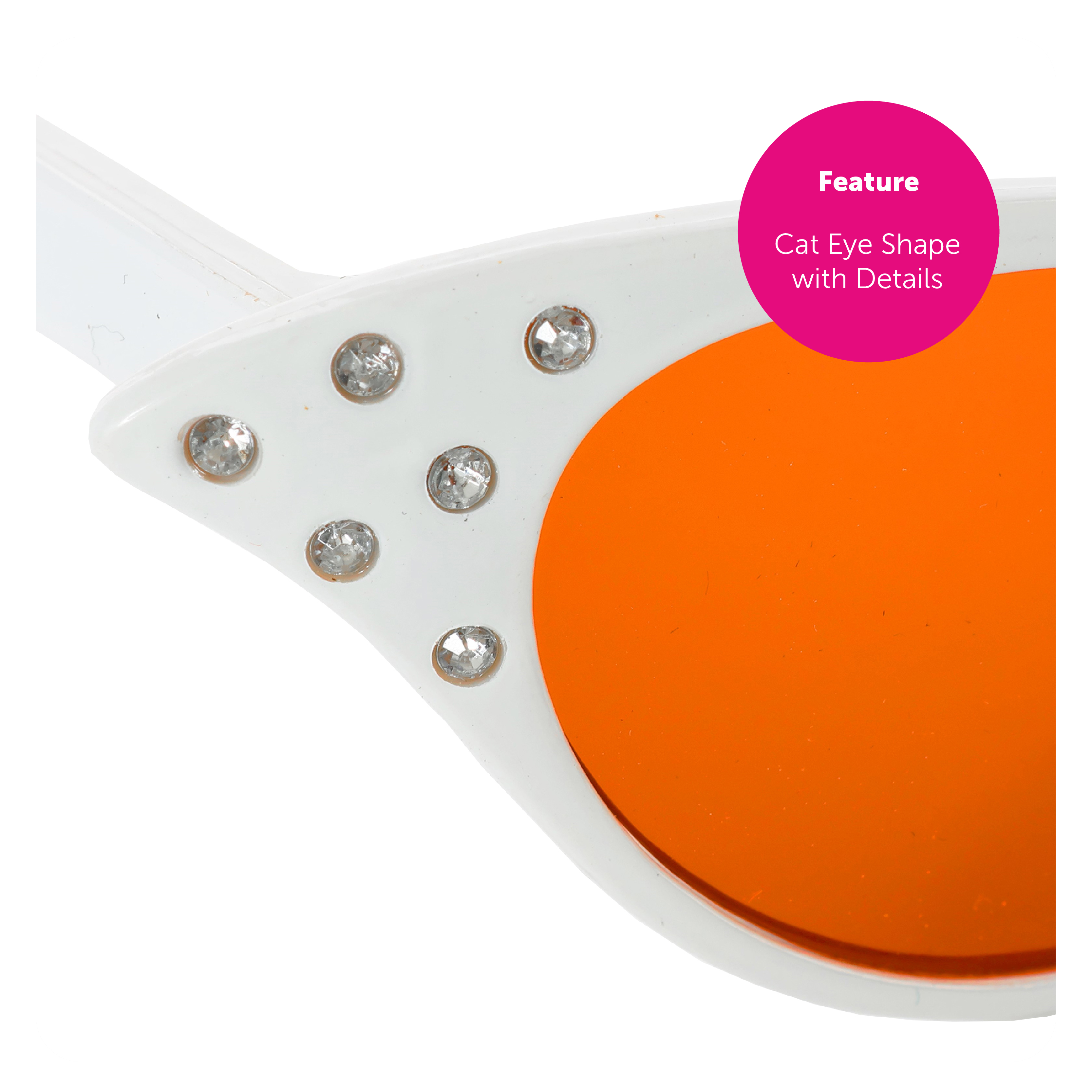 WHITE FRAME ORANGE LENS CAT EYE GLASSES: Take a step back in time to the 1950's, whilst bringing a hint of stylish glitz and glamour with our White Framed Orange Lens Cat Eye Glasses!