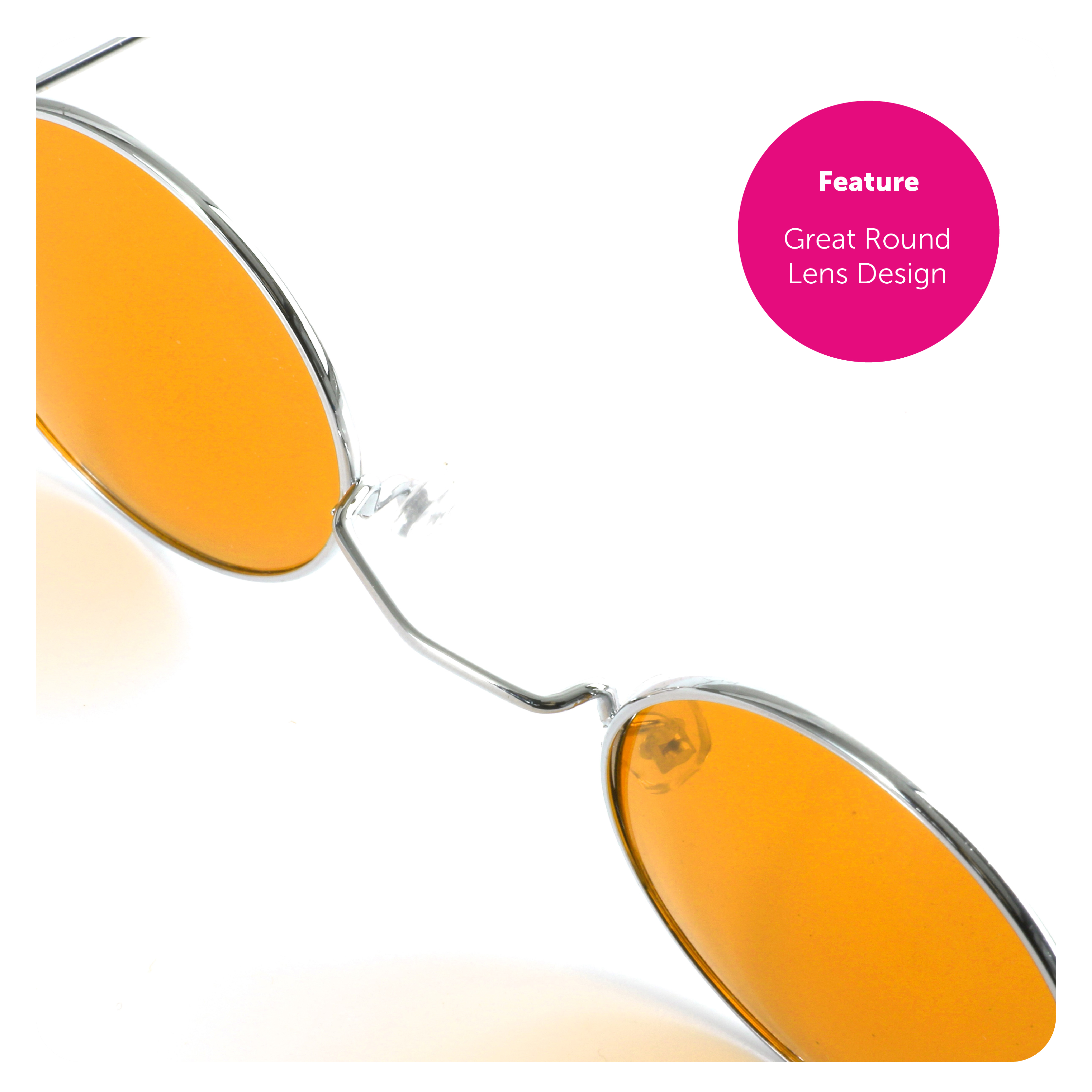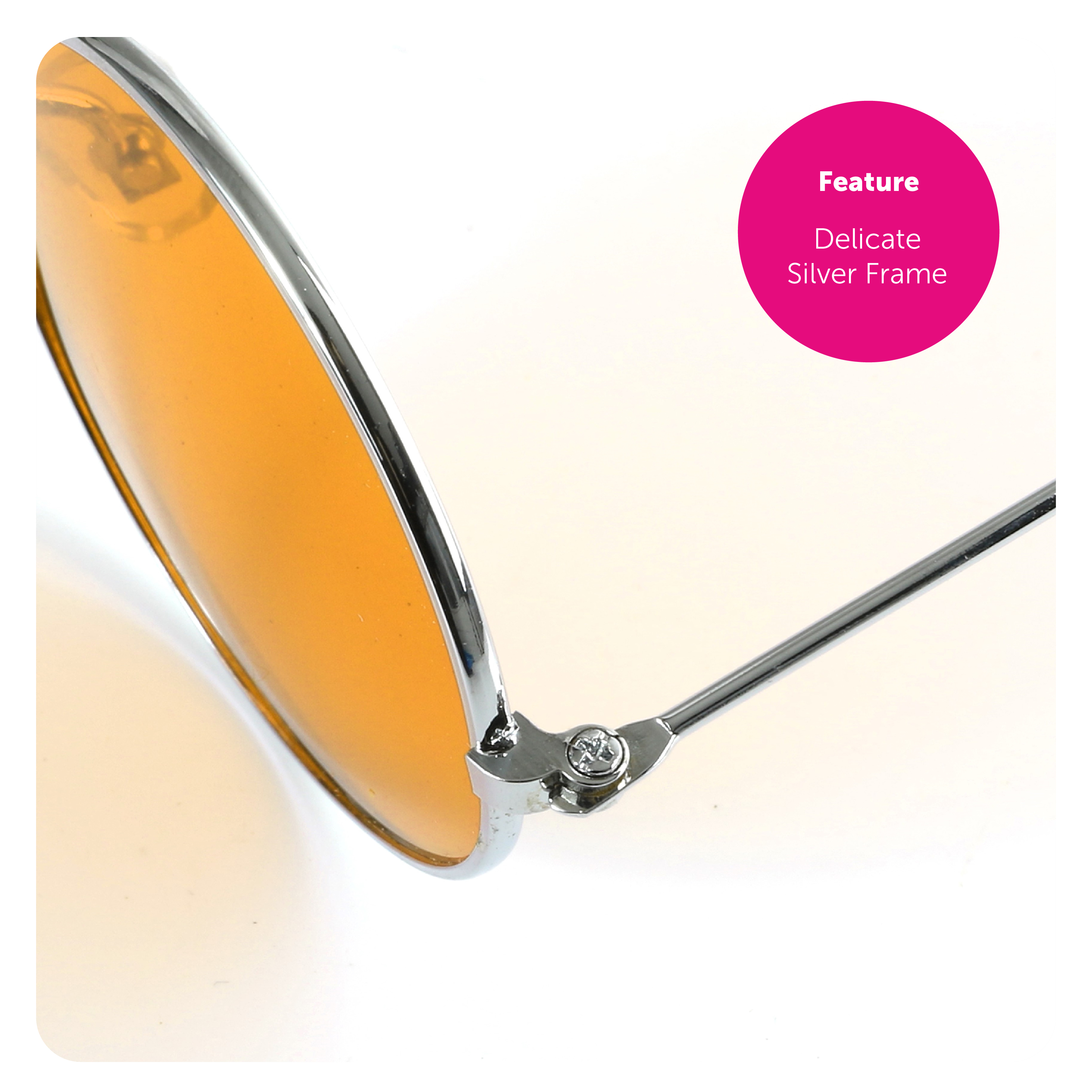 GLASSES DETAILS: Your Round Orange Hippy Glasses have Orange Lenses with a round circular rim frame design, that will comfortably sit on anyone’s face no matter what age or size you may be!