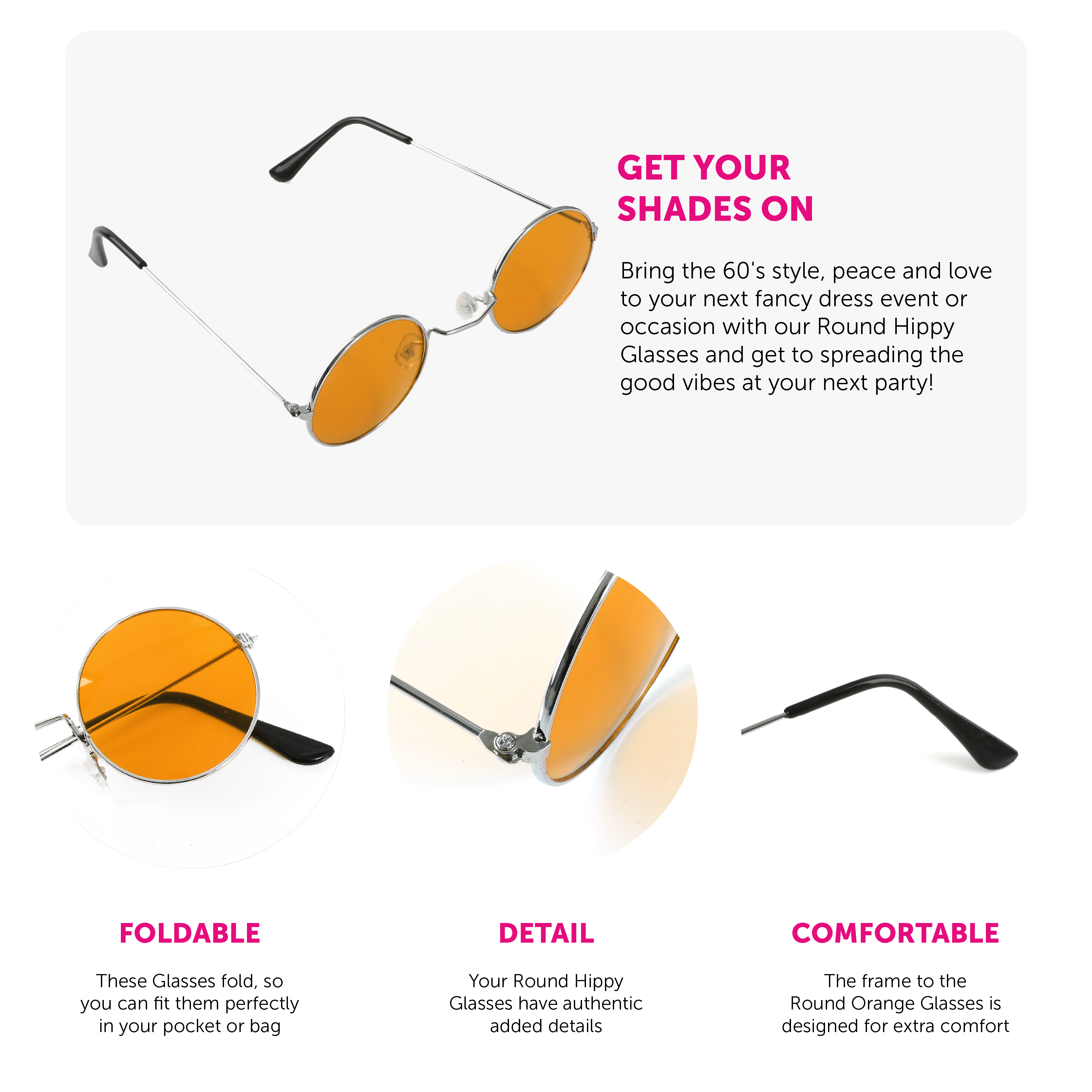 PERFECT FOR 60'S FANCY DRESS : Whether you’re donning a classic style from the 1960's, your favourite musician, or any other fancy dress costume you need, these Round Orange Hippy Glasses are perfect for you!