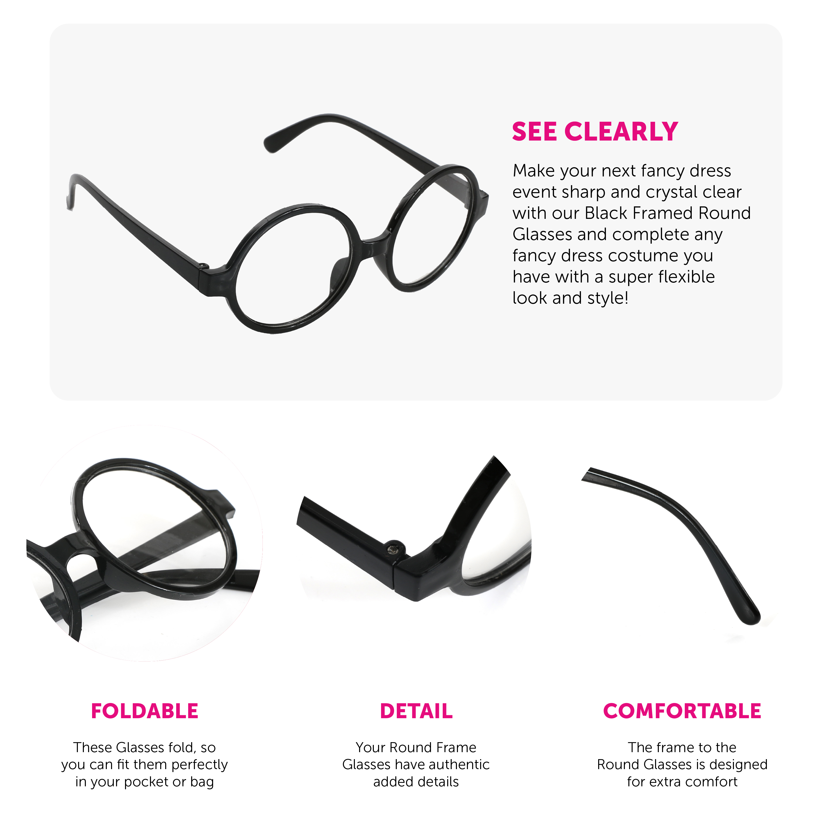 BLACK ROUND GLASSES: Make your next fancy dress event sharp and crystal clear with our Black Round Glasses and complete any fancy dress costume you have with a super flexible look and style!