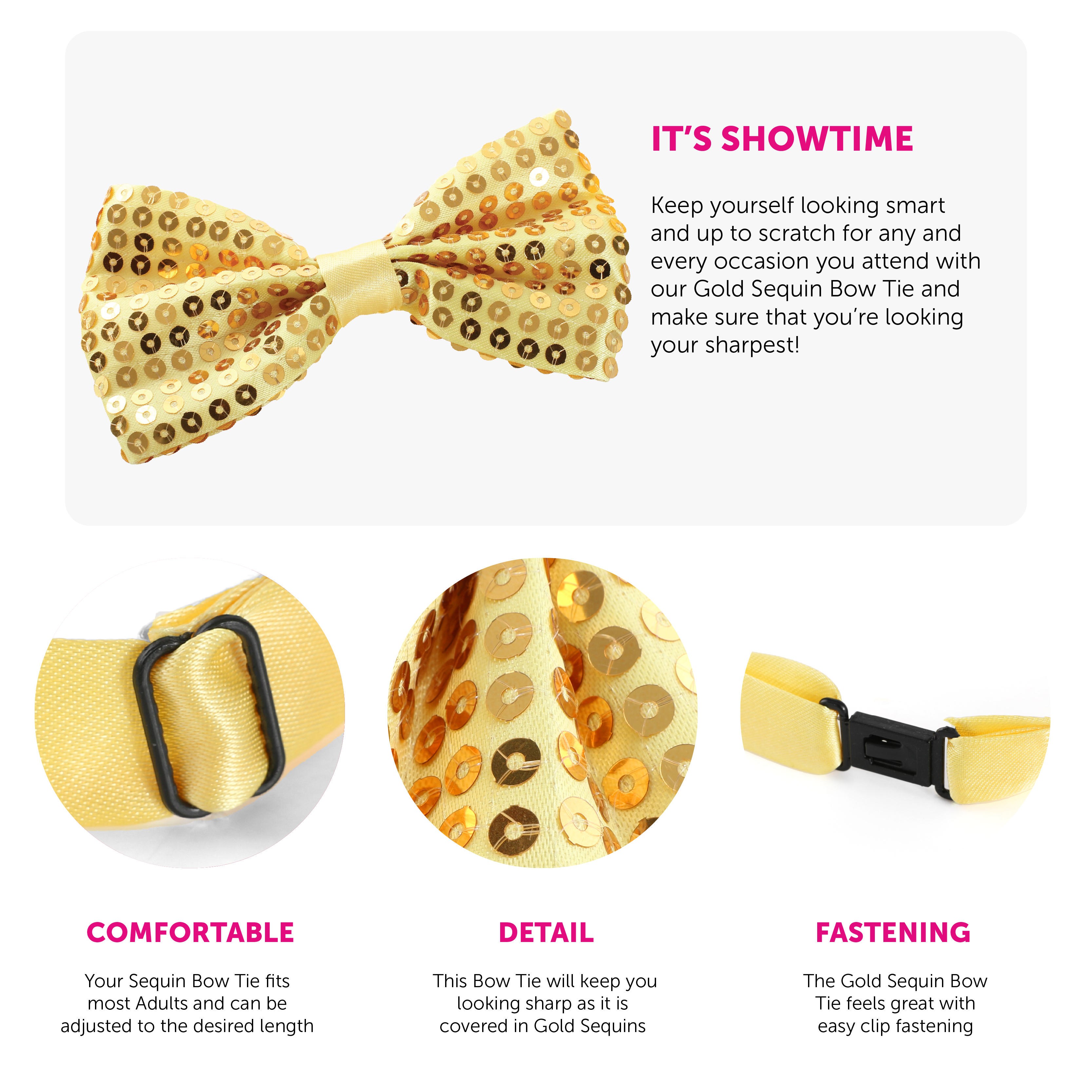 GOLD SEQUIN BOW TIE: Keep yourself looking smart and up to scratch for any and every occasion you attend with our Gold Sequin Bow Tie and make sure that you’re looking your sharpest!