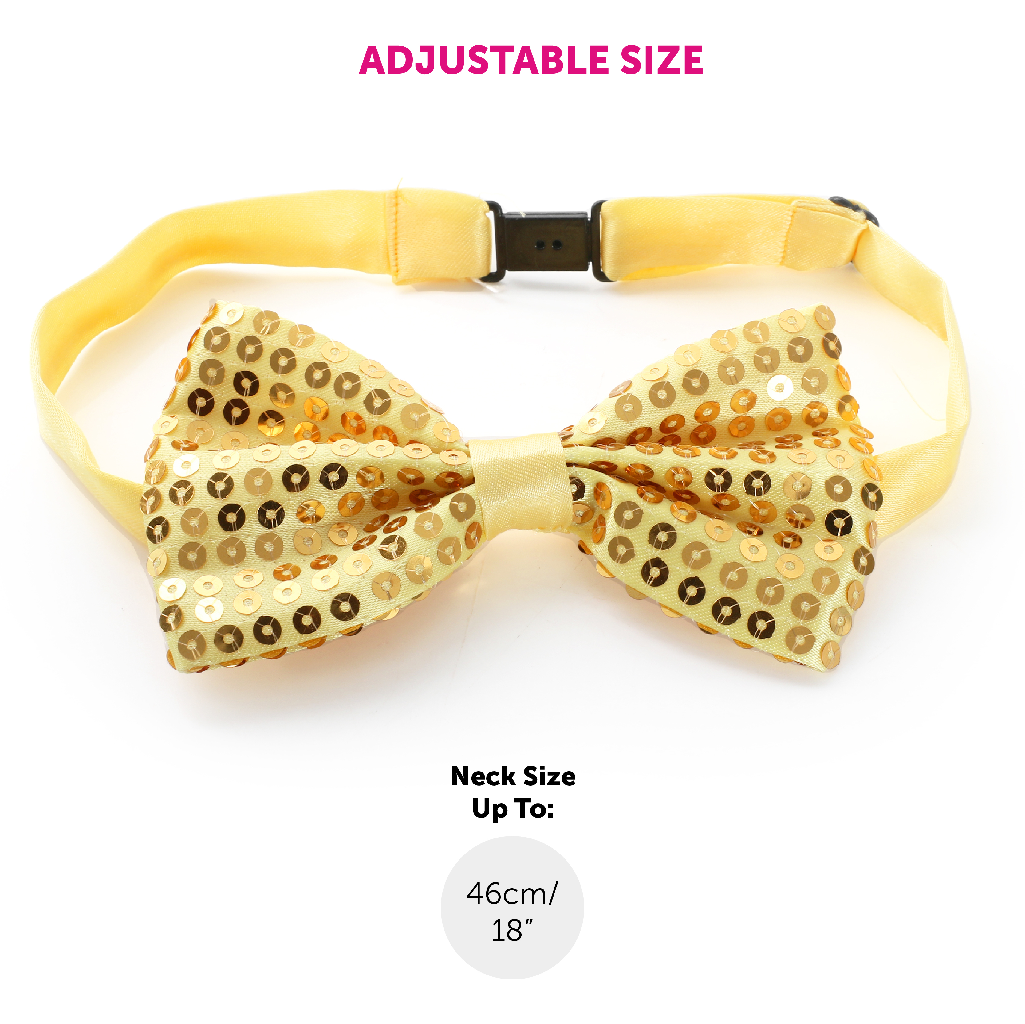 ONE SIZE FITS ALL: Your Gold Sequin Bow Tie measures up to 46cm (18") and fits any Adult perfectly and can be adjusted to the desired length and size to fit your style comfortably and well!